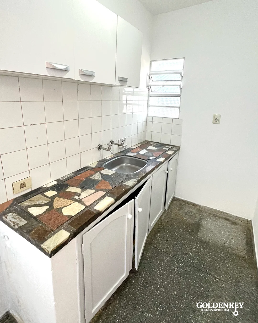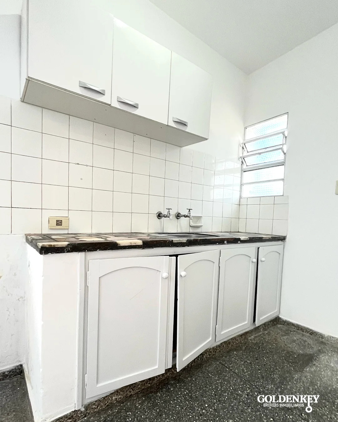 Cocina independiente con mueble aereo y bajo mesada, mesada en granito.