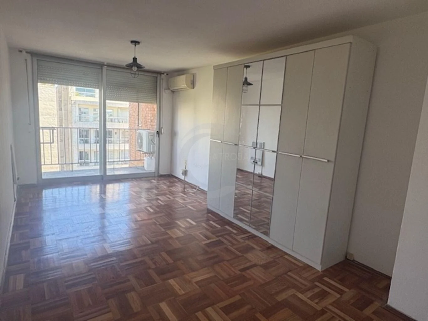 El dormitorio es cómodo, con buena iluminación, pisos de parquet y placard.