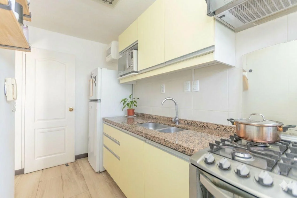 Esta unidad se encuentra en un 8vo piso al frente y consta de 48 m2 distribuidos de la siguiente forma: