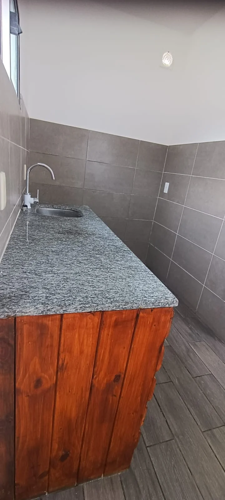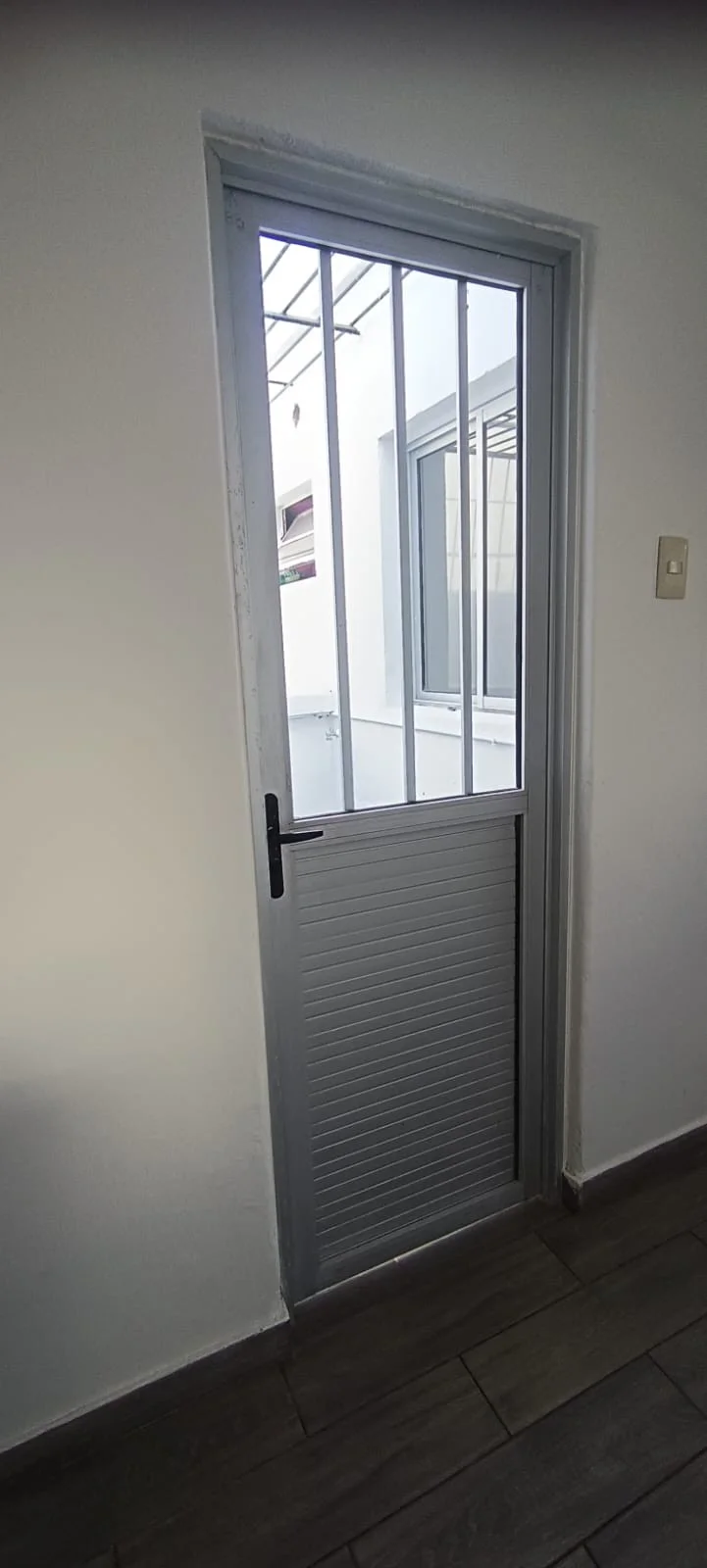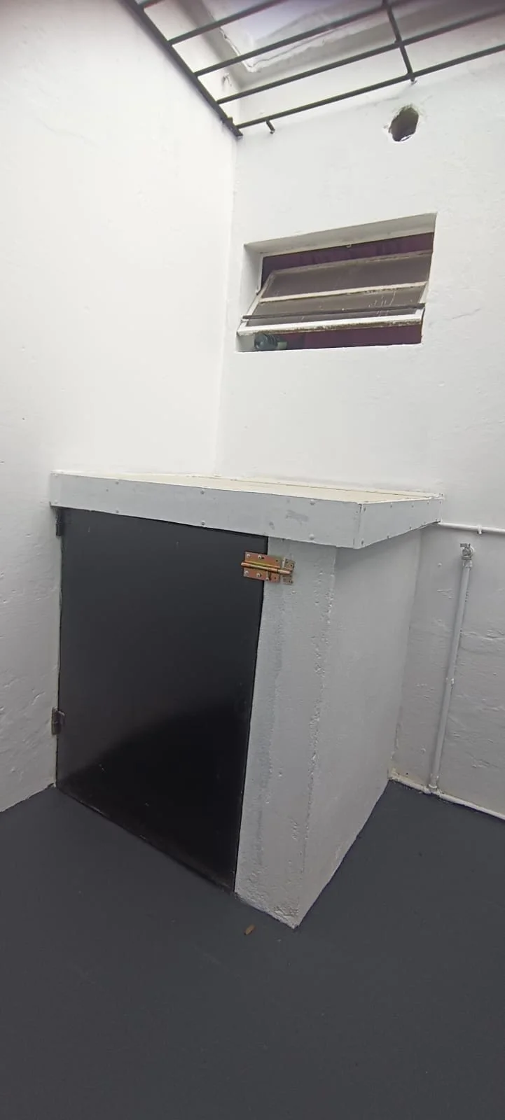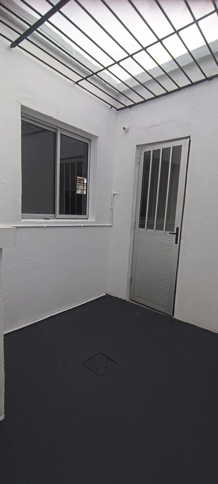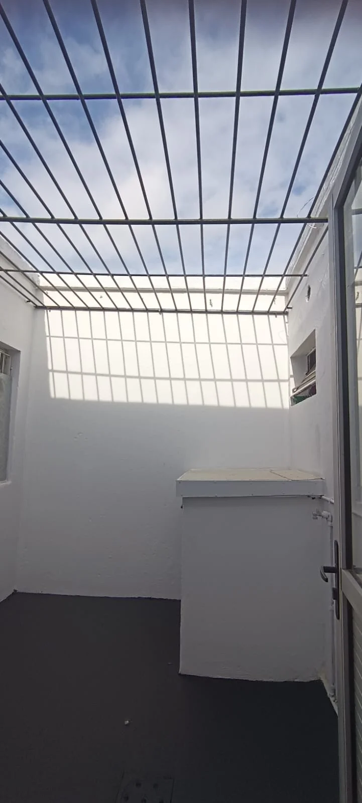 Patio interior con reja aérea e instalación para lavarropas.