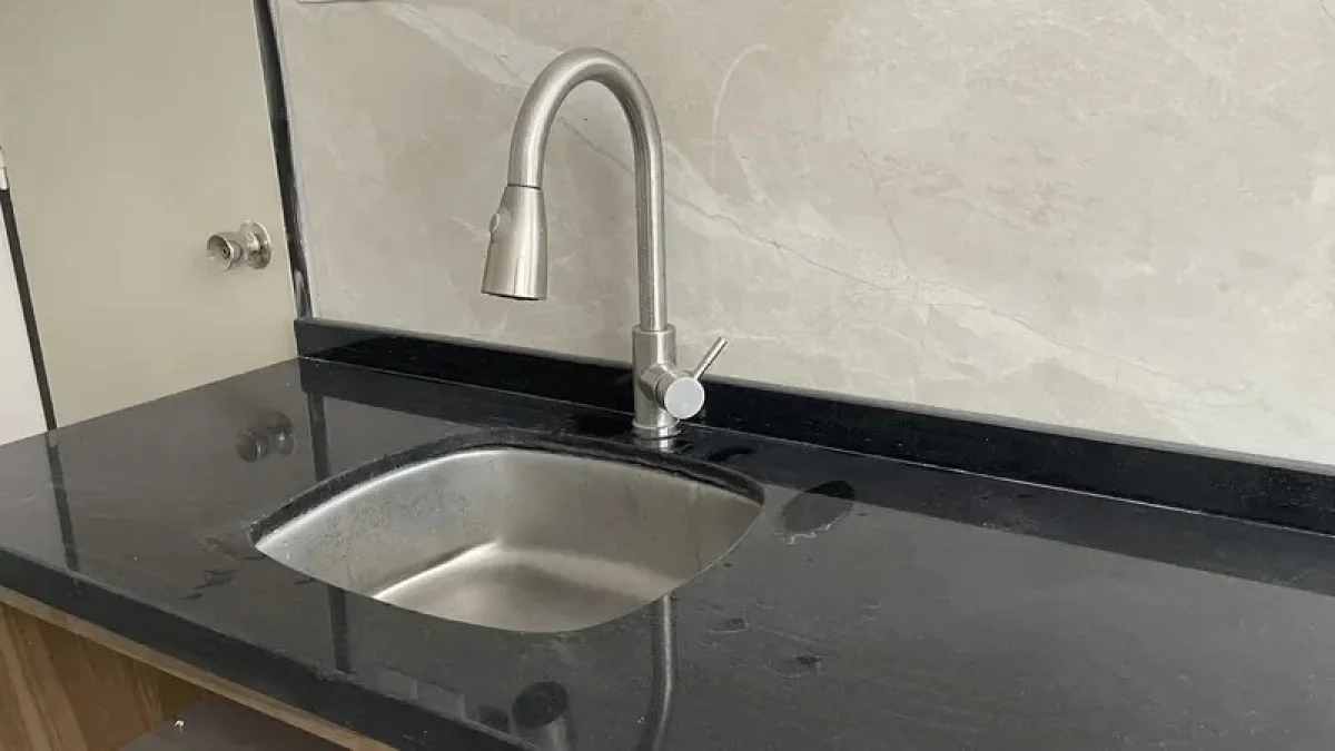 . Cocina integrada con placares, barra desayunadora, anafe y extractor