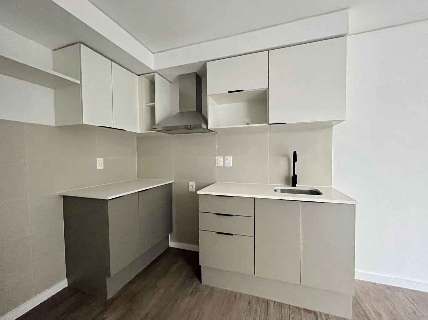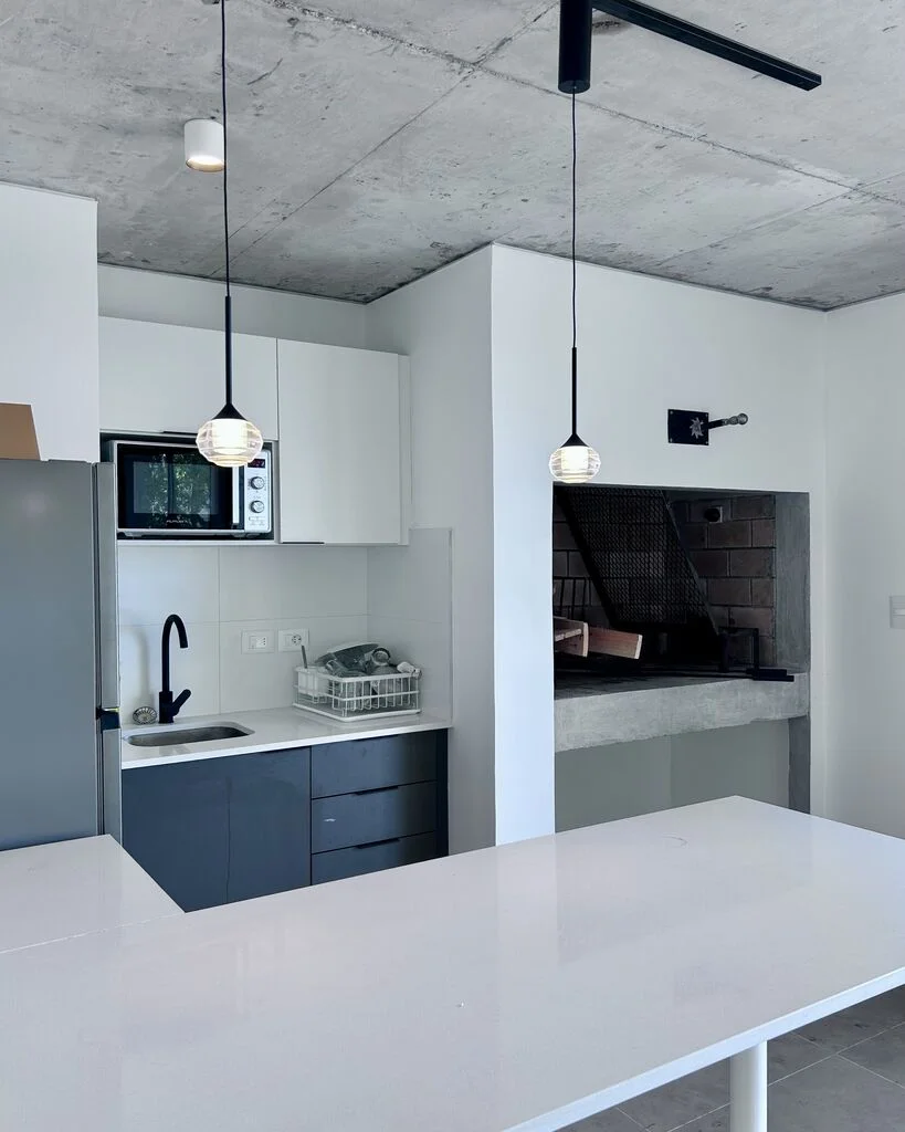 Cocina integrada con campana , moderna y funcional.