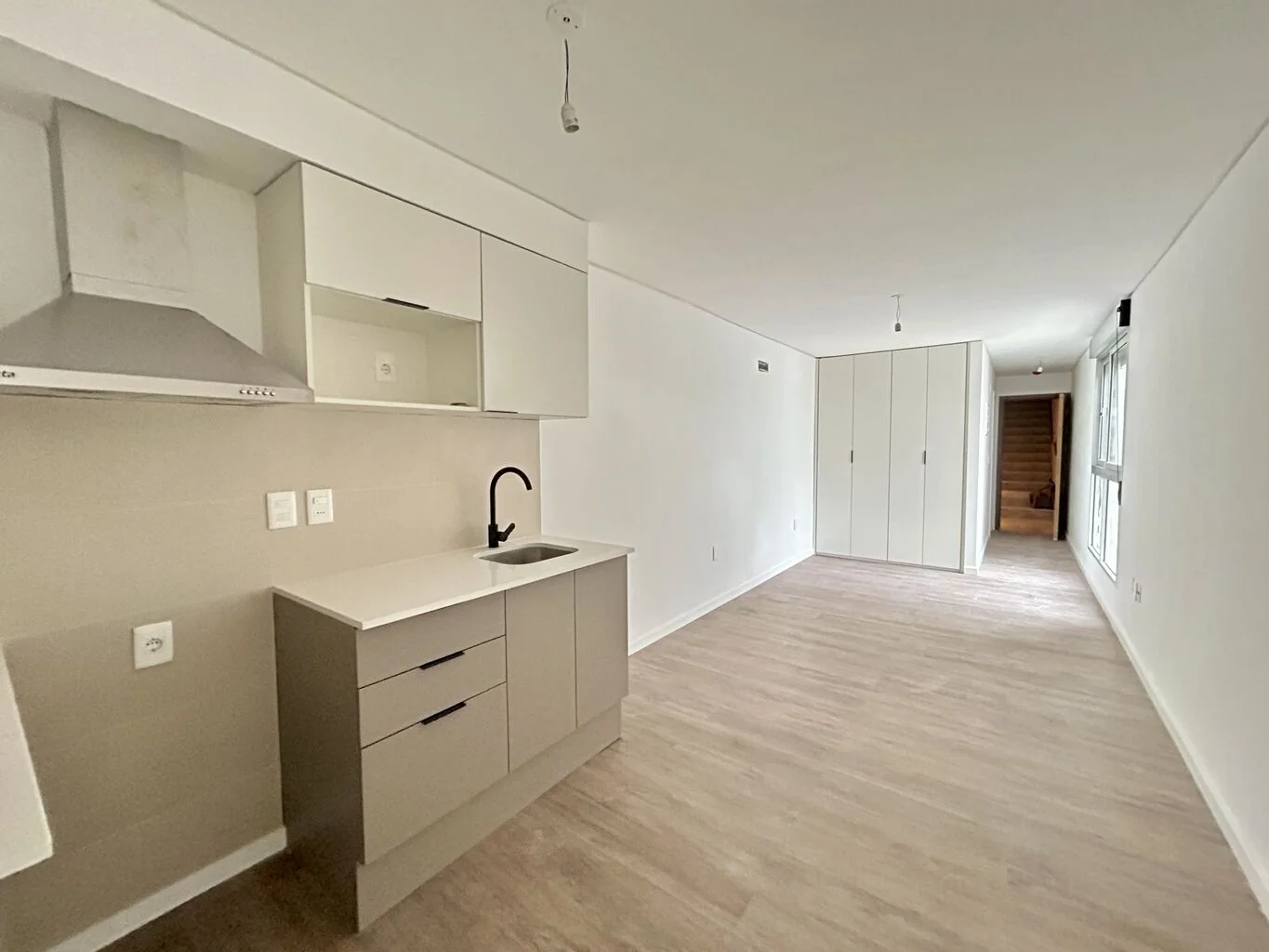 Cocina integrada con campana , moderna y funcional.