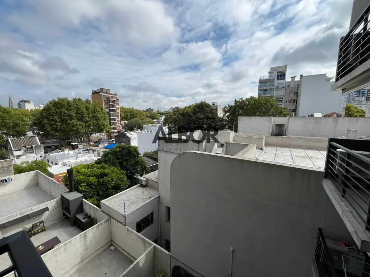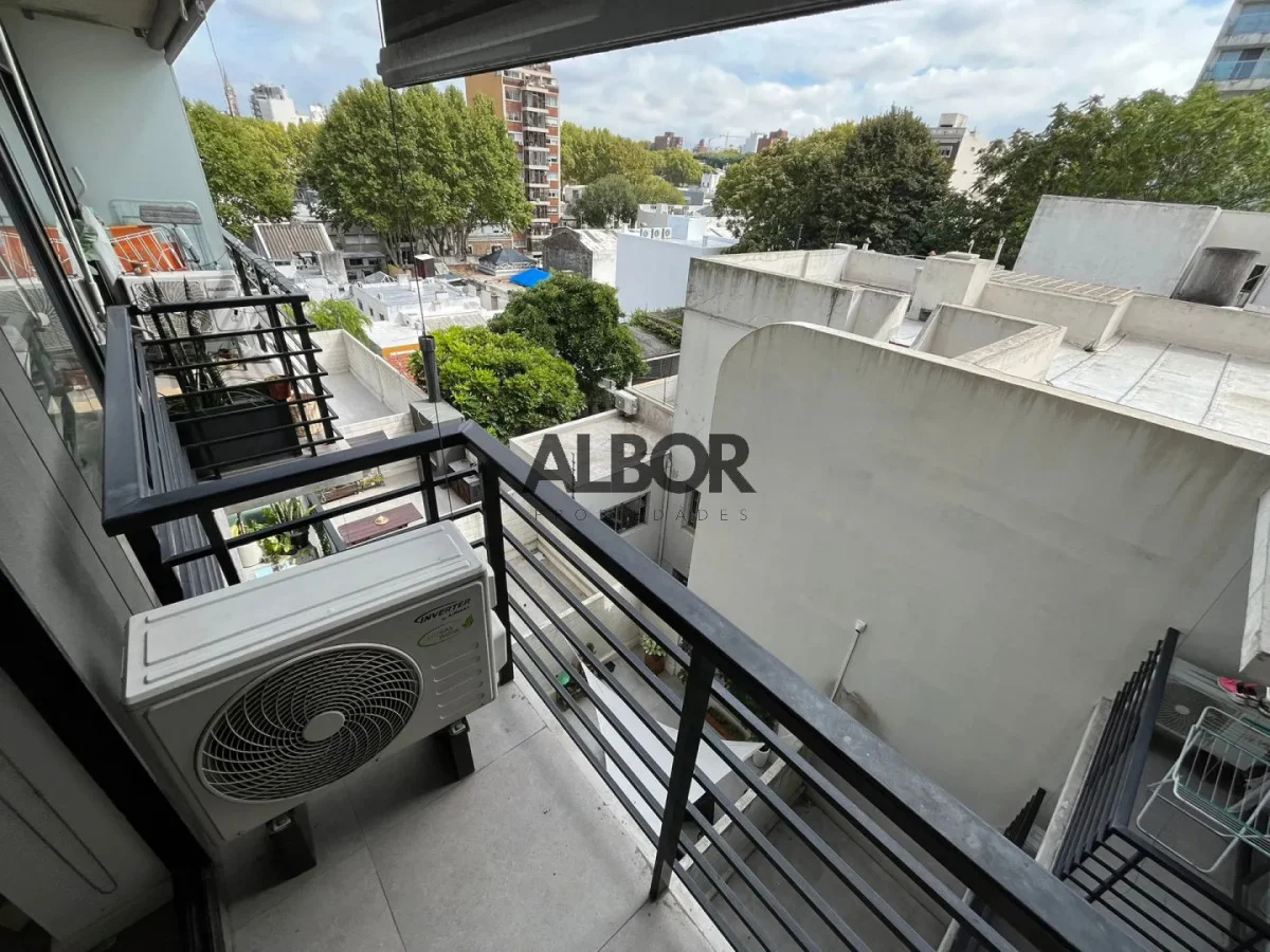 Ambiente único al contrafrente, con terraza y buena vista despejada. Cuenta con cocina equipada con placares, horno y anafe, aire acondicionado y baño completo.
