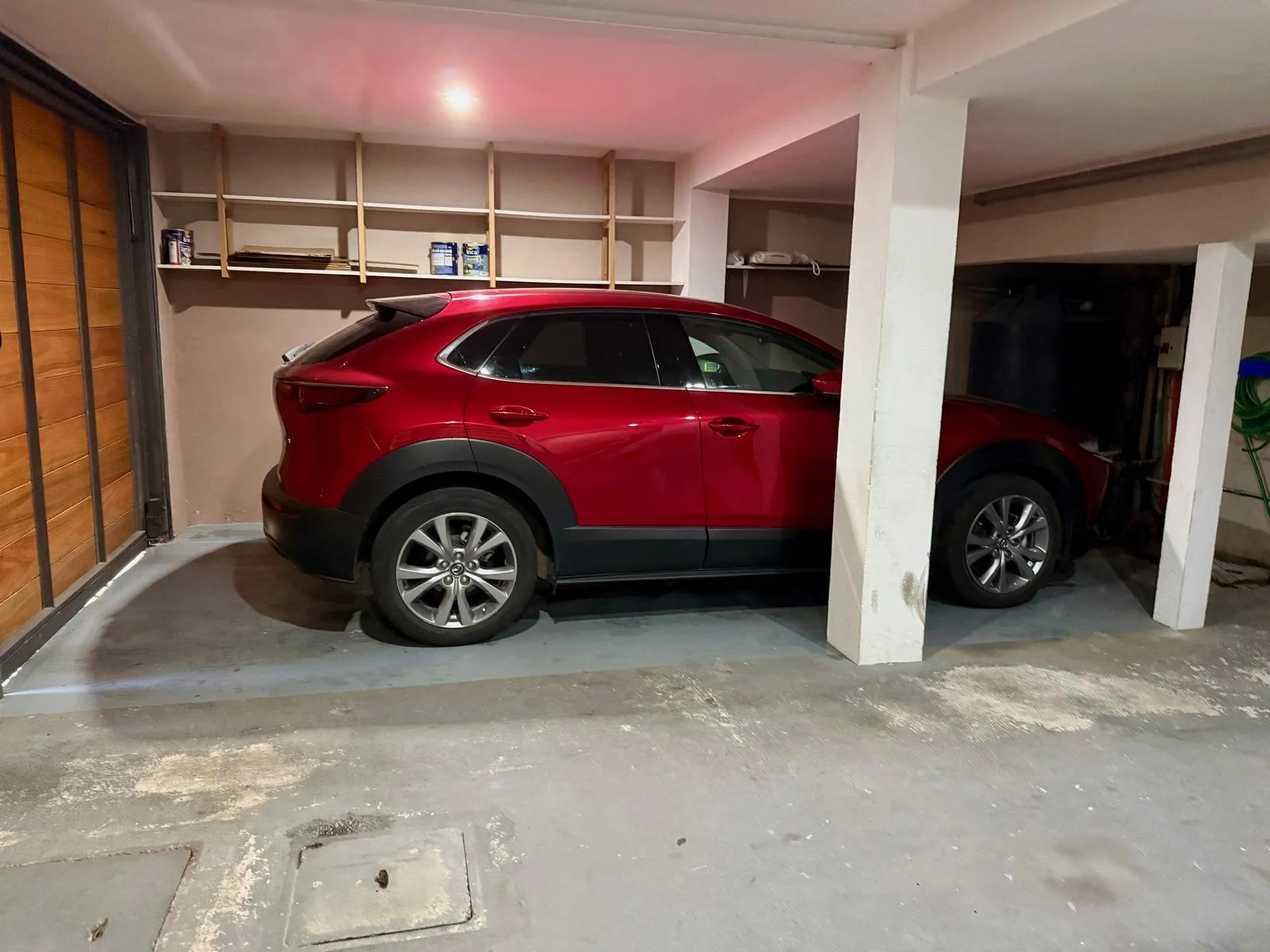 Cochera externa individual para auto pequeño.