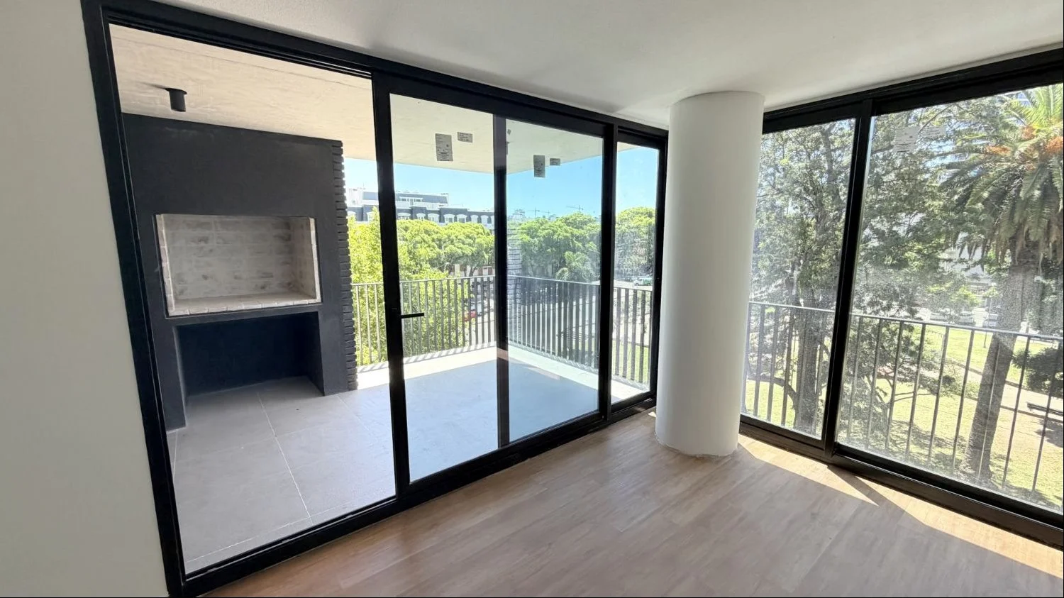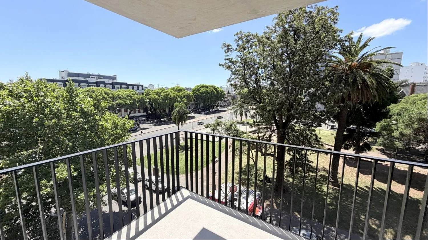Apartamento en alquiler en Pocitos. Amplio moanoambiente con linda vista a la Plaza Varela y gran terraza con parrillero. Este monoambiente amplio se encuentra a estrenar.
