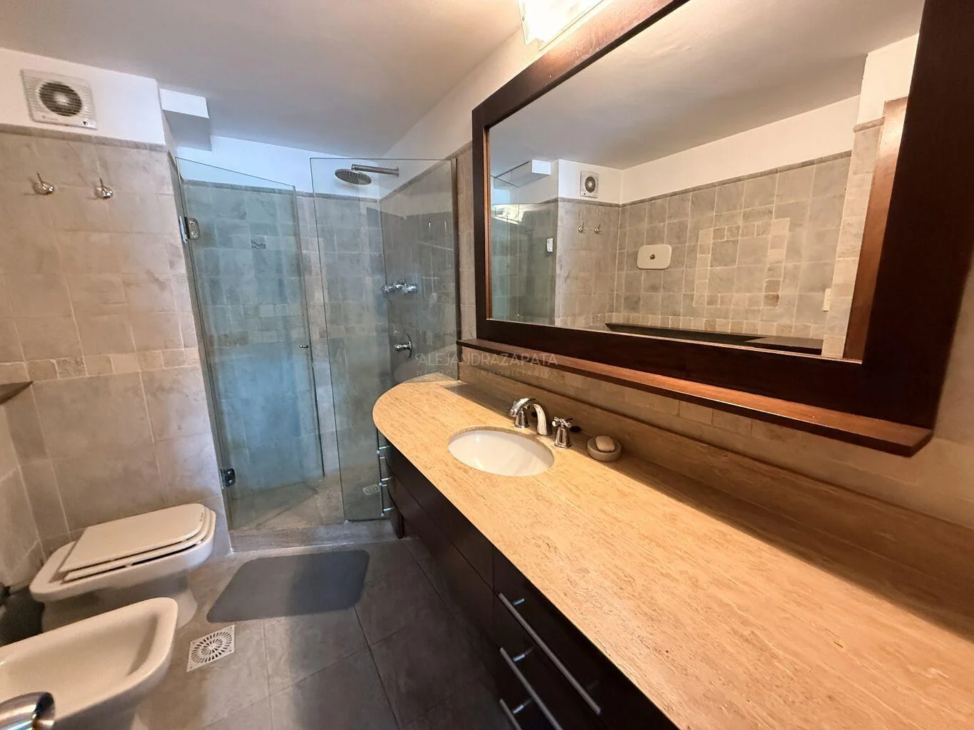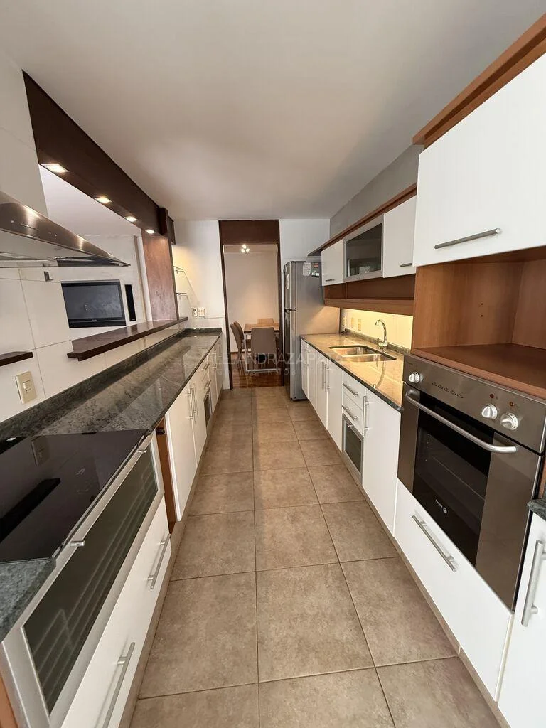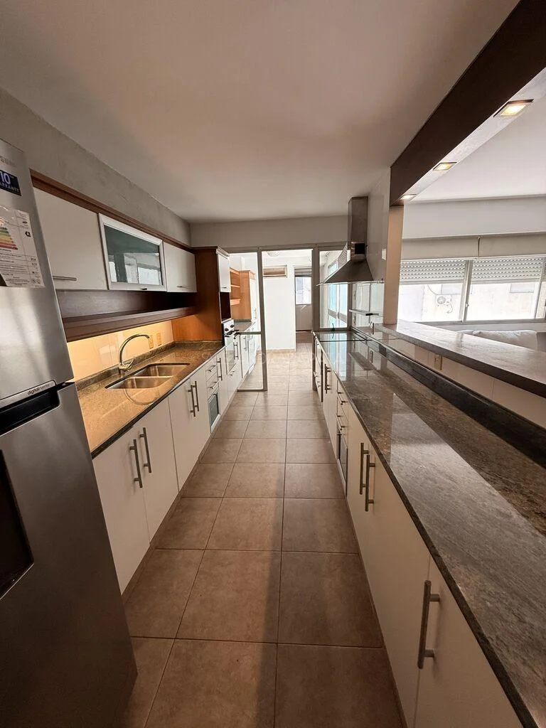 Toilette y hacia el contrafrente tenemos una moderna cocina con doble mesada y gran profusión de placares.
