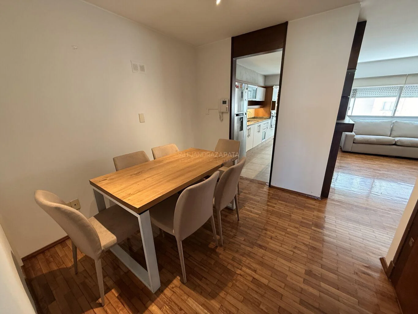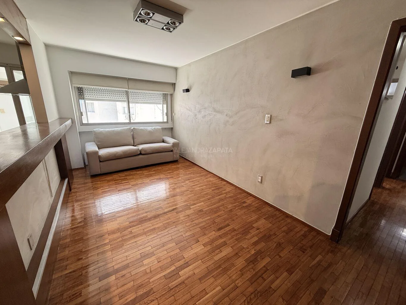 El apartamento cuenta con pisos de parquet plastificados.