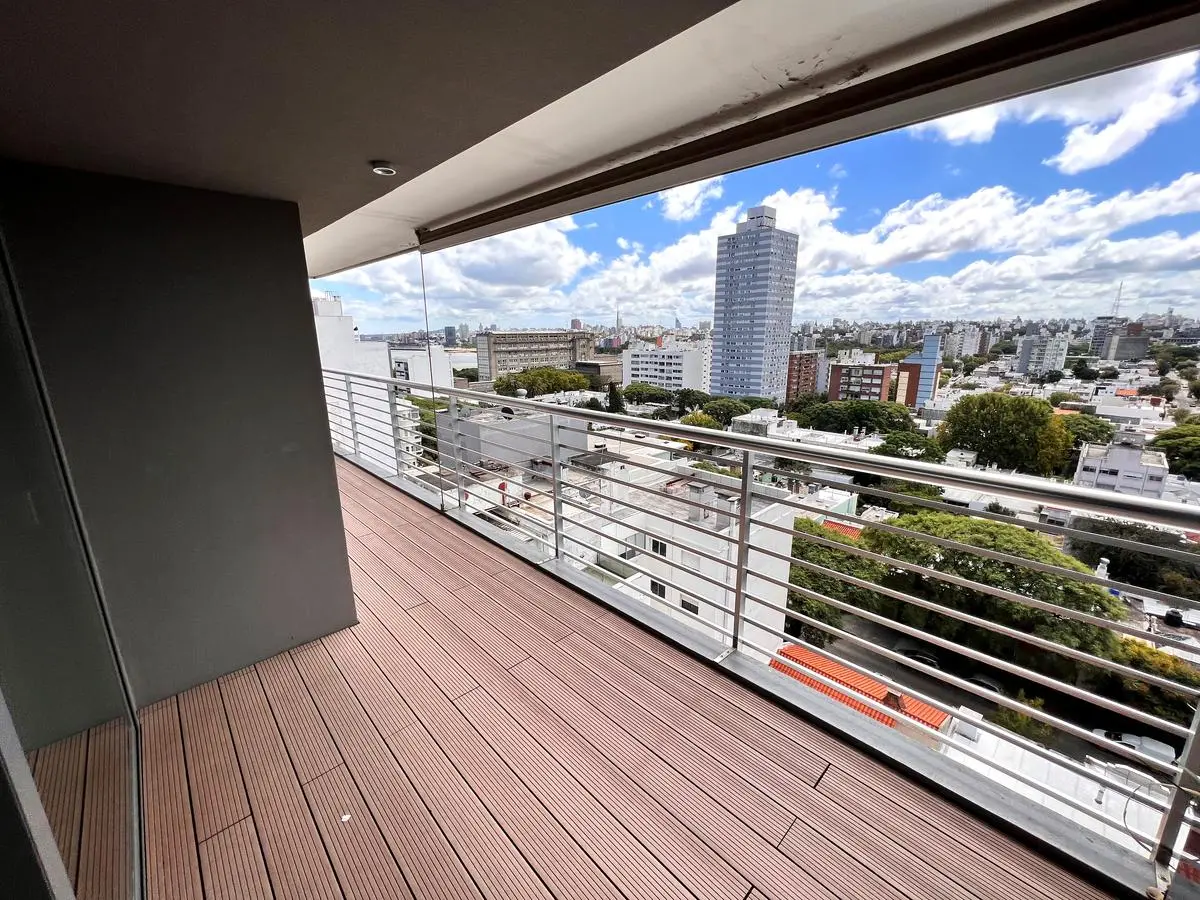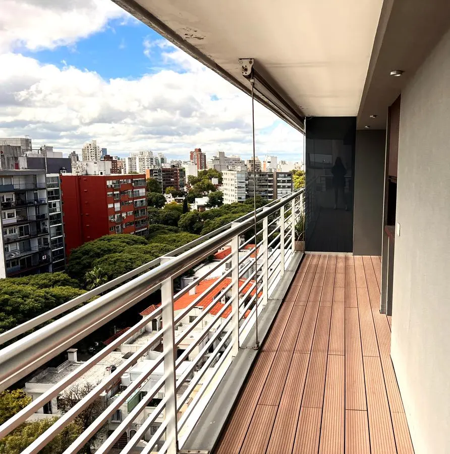 Entrada a living comedor muy cómodo con salida a terraza en forma de L que rodea el apartamento, con vista despejada panorámica, parrillero y toldos.