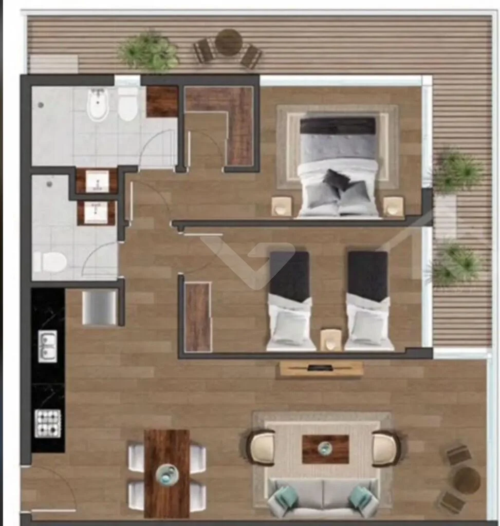 Dos dormitorios con placares, uno de ellos en suite, luces led y cortinas de enrrollar.