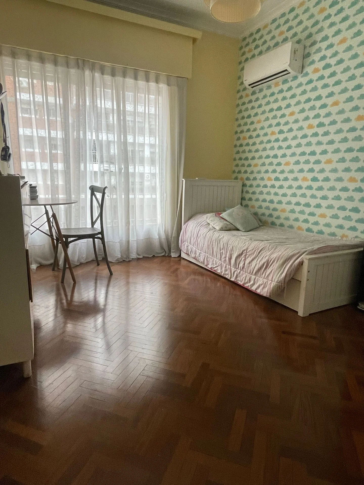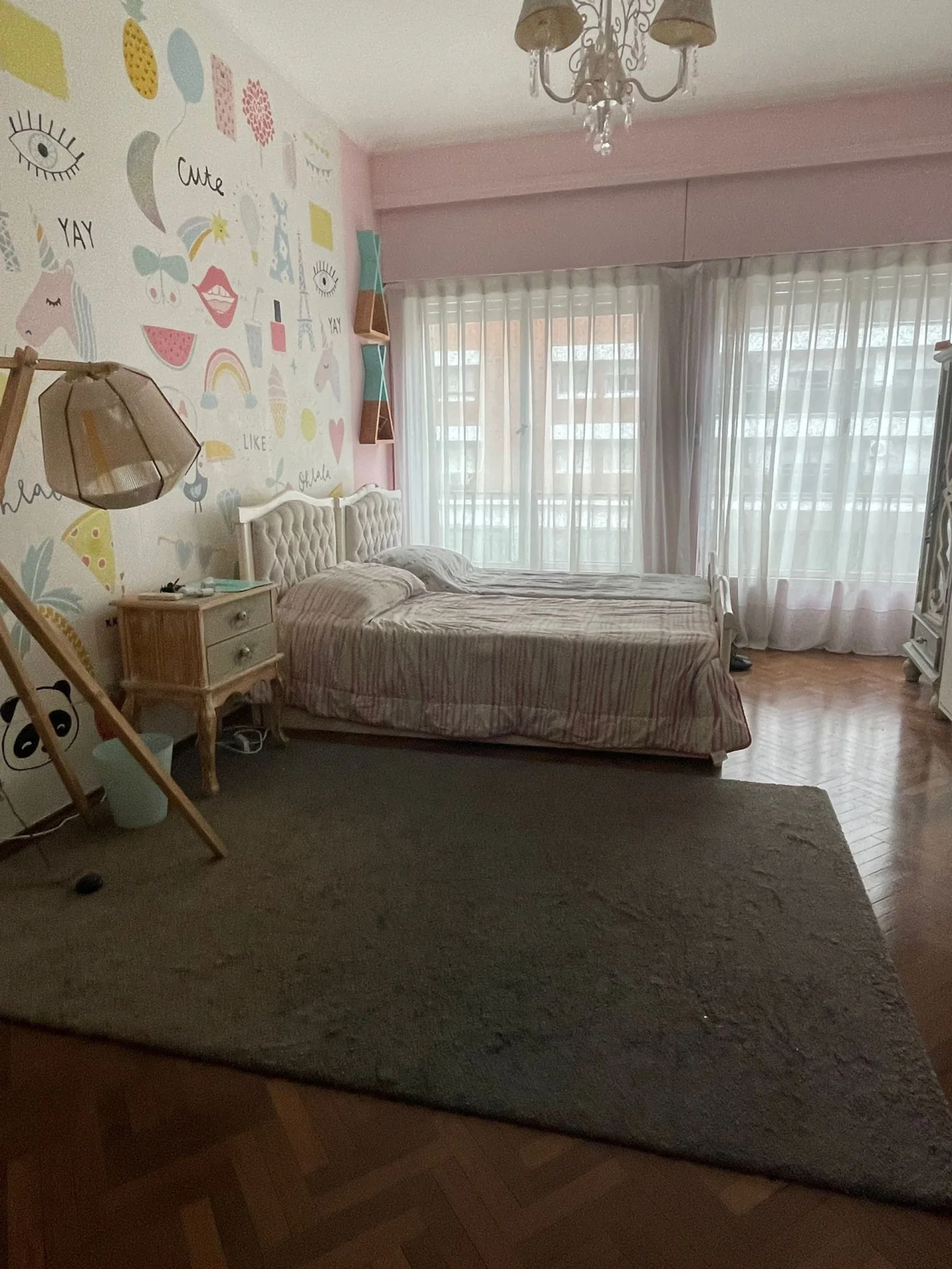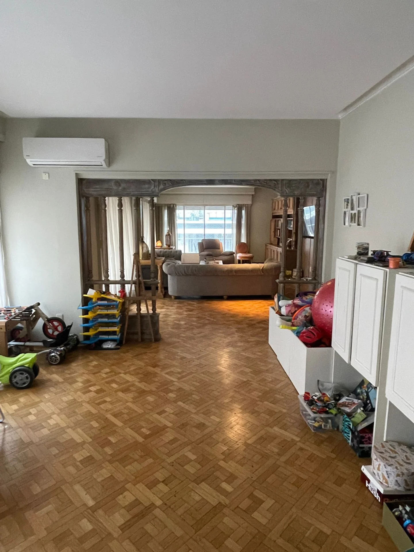 Al ingresar, un amplio hall recibidor da paso a un living generoso y luminoso, con doble circulación y espacios bien definidos: por un lado, el comedor formal; por otro, un ambiente hoy utilizado como sala de juegos, ideal también como estar o escritorio. Todos estos espacios cuentan con salida al balcón, al igual que los dormitorios, lo que realza aún más la luminosidad y ventilación natural del apartamento. El living destaca además por su piso de lapacho, aportando calidez y distinción.