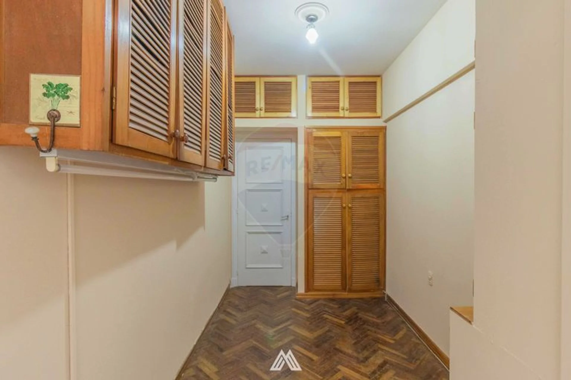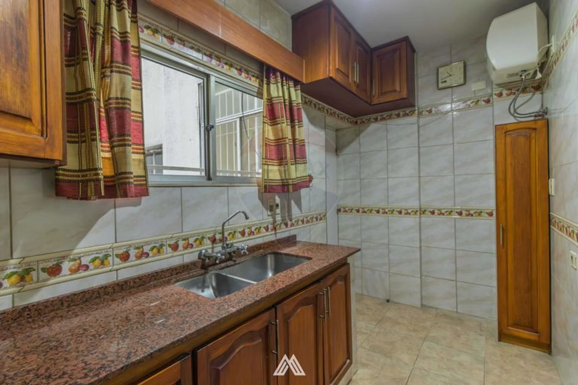 Cuenta con tres dormitorios grandes, uno de ellos en suite, con placares y pisos de parquet, dos de ellos al frente y uno a pozo, cuarto dormitorio de servicio o escritorio, cocina definida con acceso de servicio, segundo baño completo.