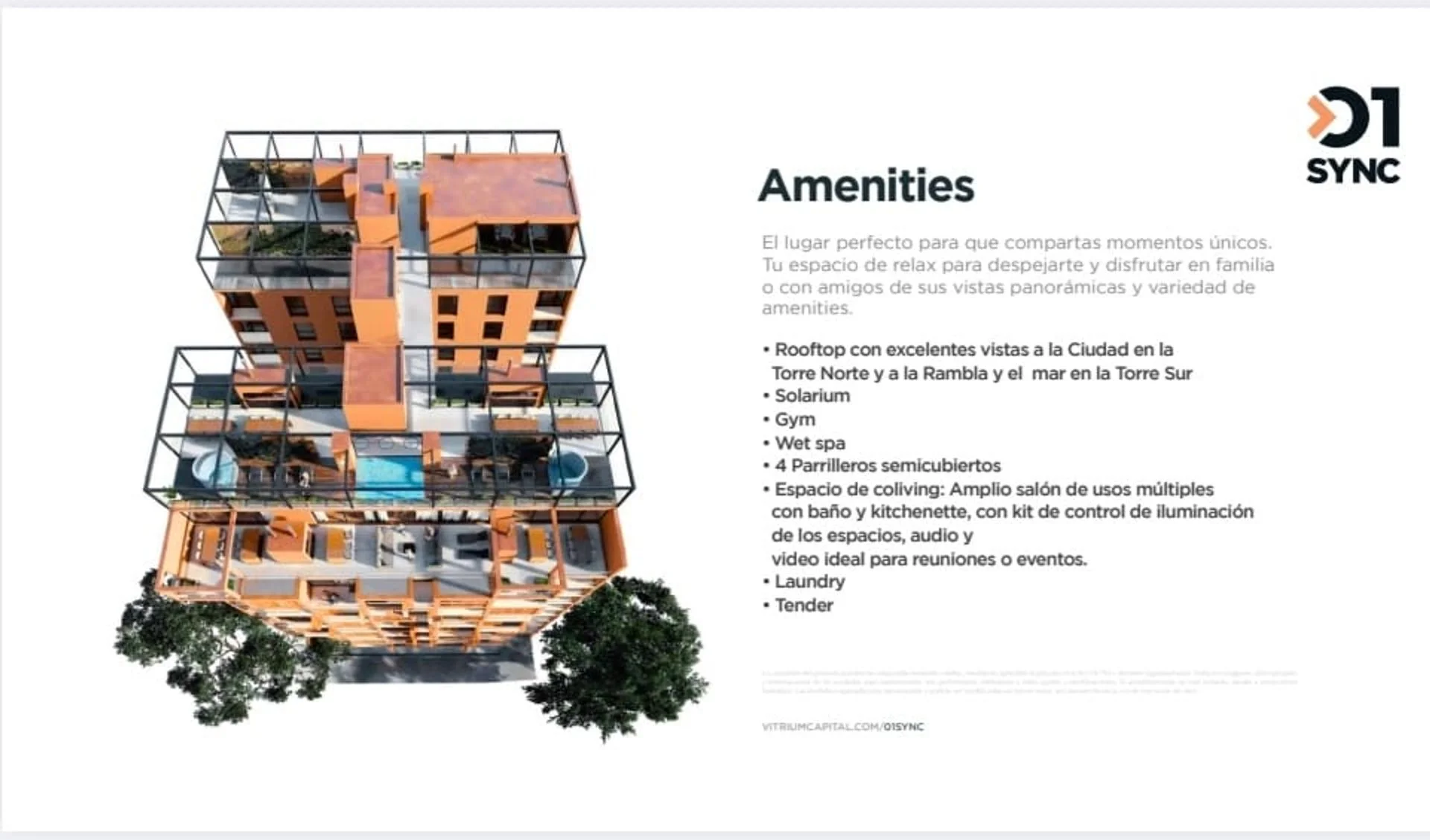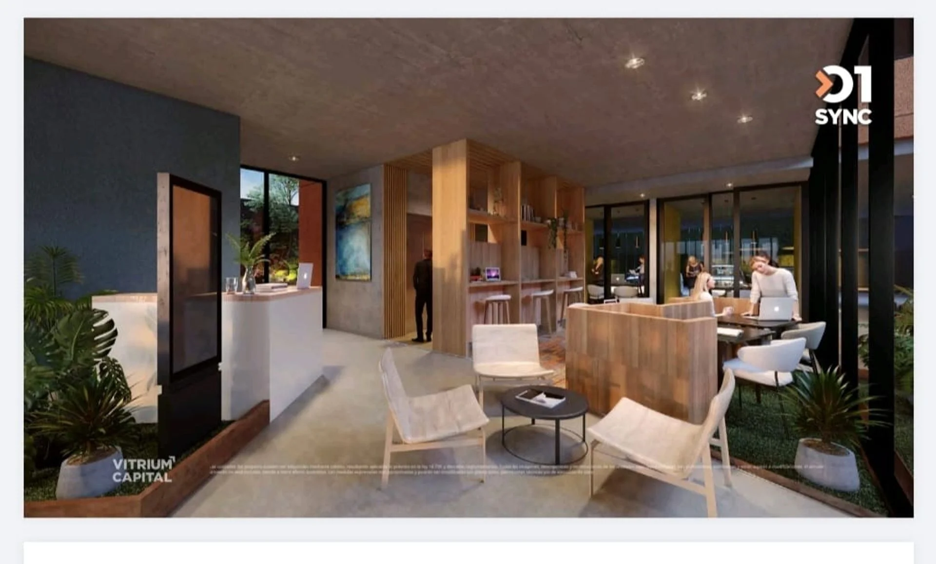 El edificio 01SYNC cuenta con amenities que transforman lo cotidiano: gimnasio de primer nivel, business center para trabajo remoto, lavandería, ascensor y un sofisticado salón de usos múltiples que expanden tus posibilidades de conexión e interacción.