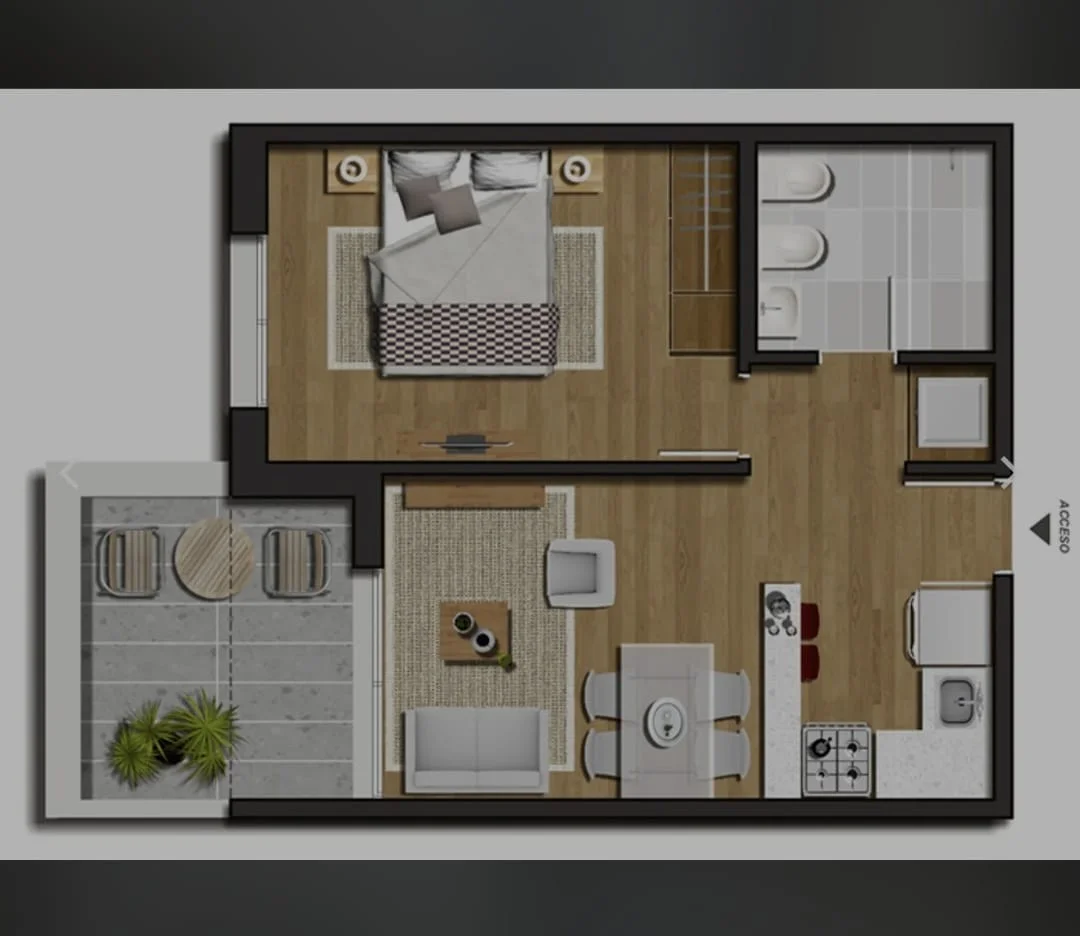 Apartamento de 1 dormitorio ubicado a pasos del Shopping Tres Cruces. La unidad se compone de 1 dormitorio, 1 baño completo, cocina definida y living-comedor con buena iluminación natural. Cuenta con aire acondicionado instalado.