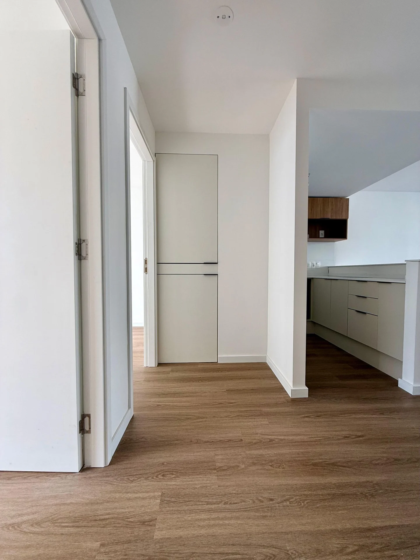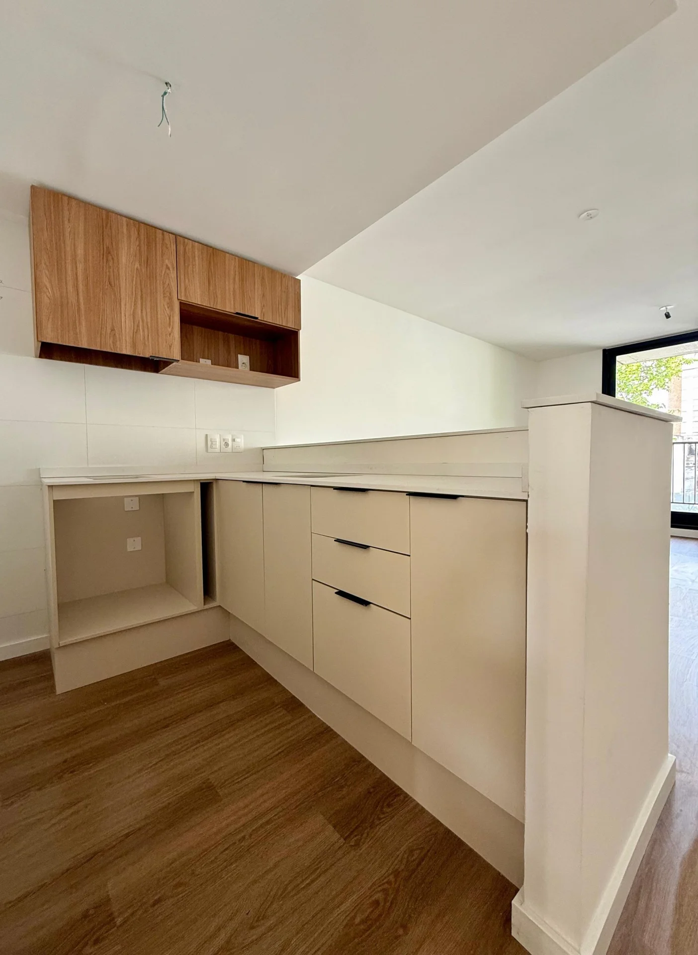 El living se orienta hacia el frente y tiene salida a un balcón de 3 m2. La cocina es integrada y tiene mueble sobre y bajo mesada. Cuenta con un mueble para colocación de lavarropas y calefón.