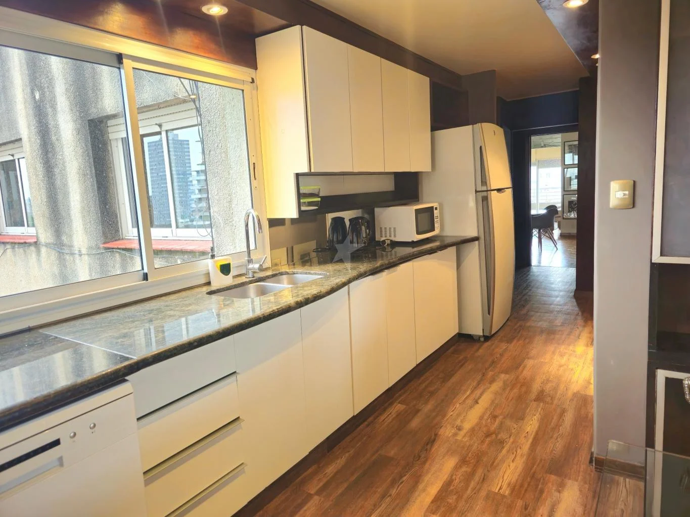Estar, escritorio o posibilidad de cuarto dormitorio. 3 baños, dos completos y un toilette. Cocina con comedor y servicio.