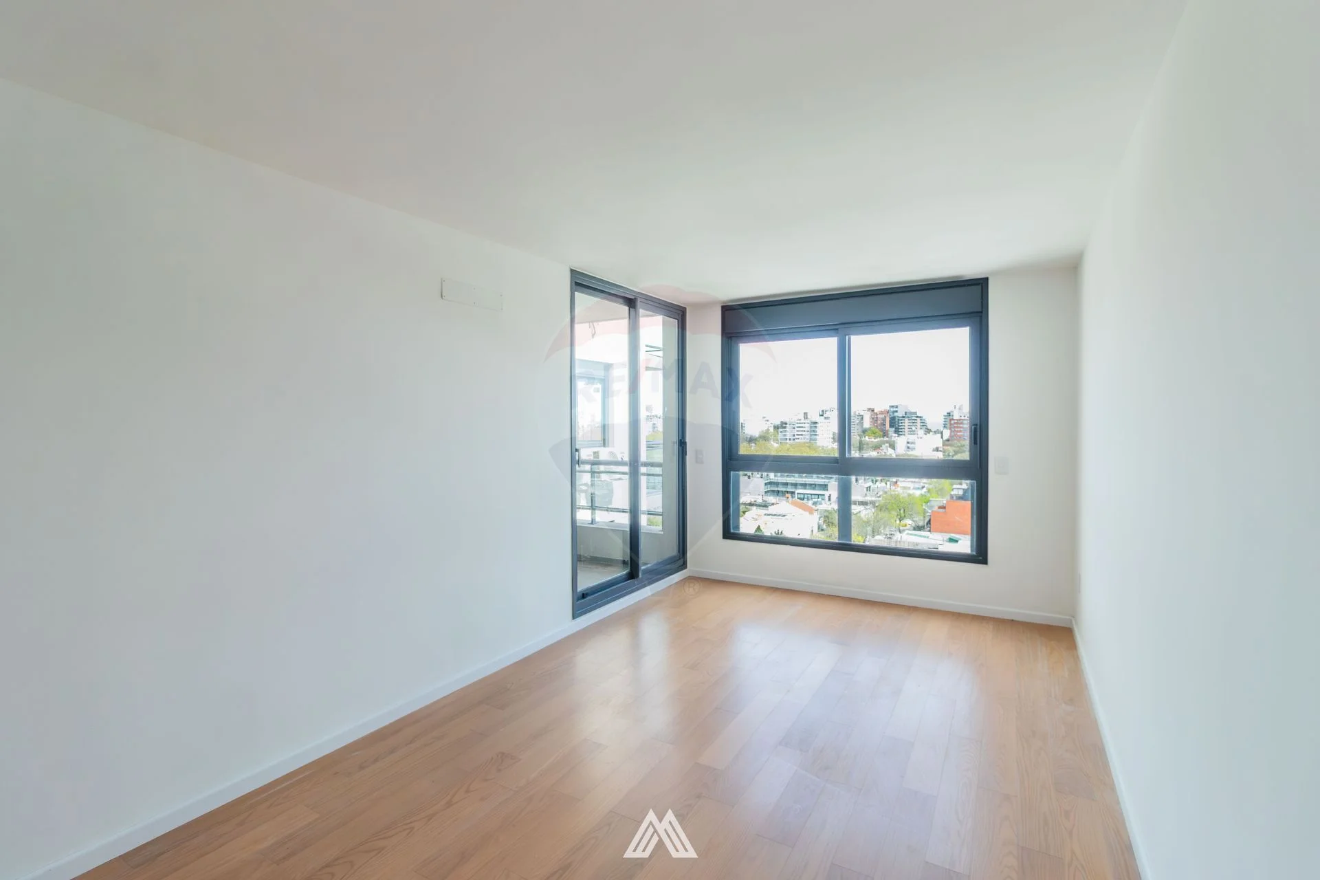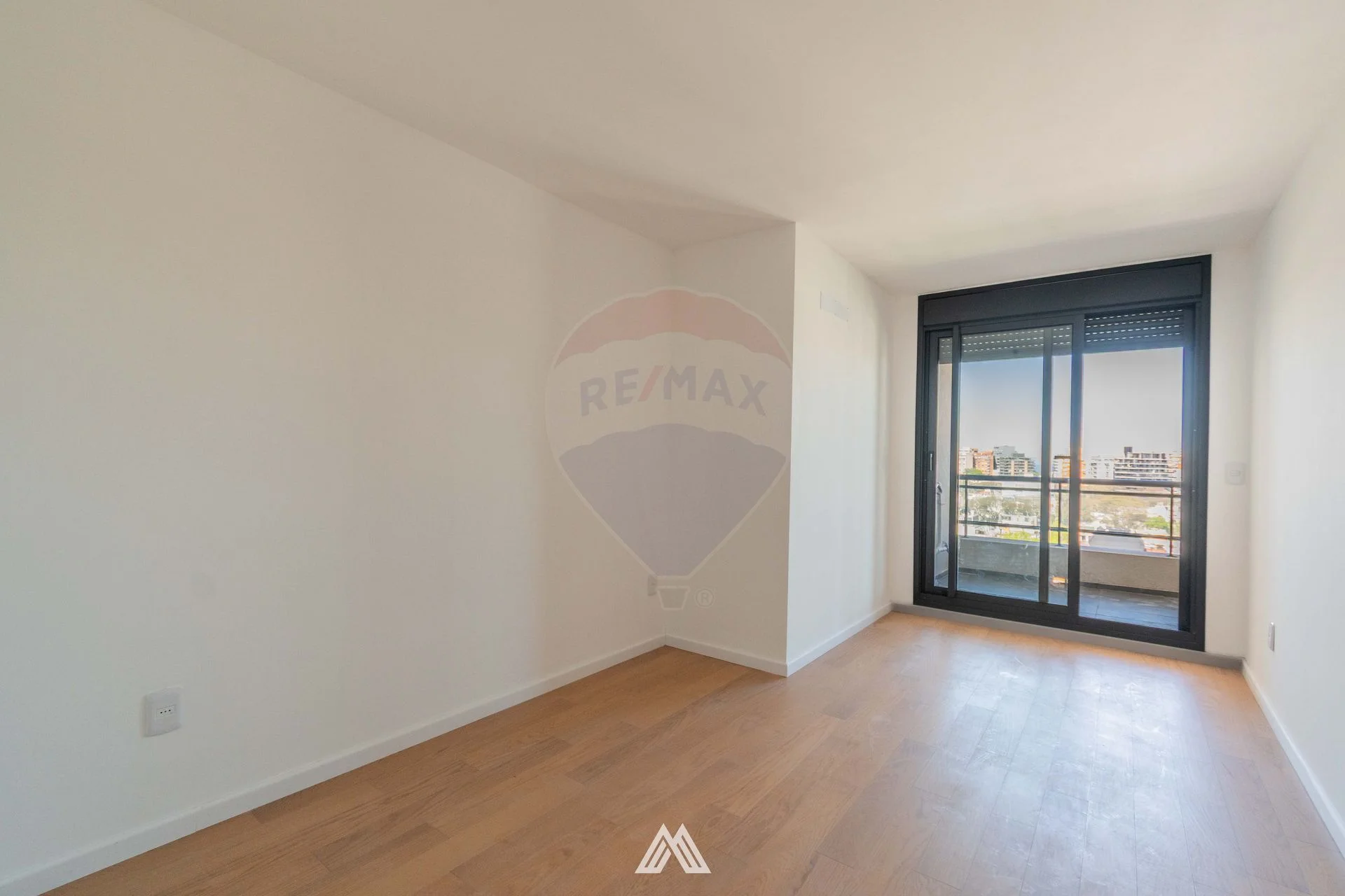 El dormitorio, es super amplio, además de la cama de dos plazas y mesas de luz tiene un sector previo a la terraza que puede ser usado para escritorio. Se entrega con placares completos.