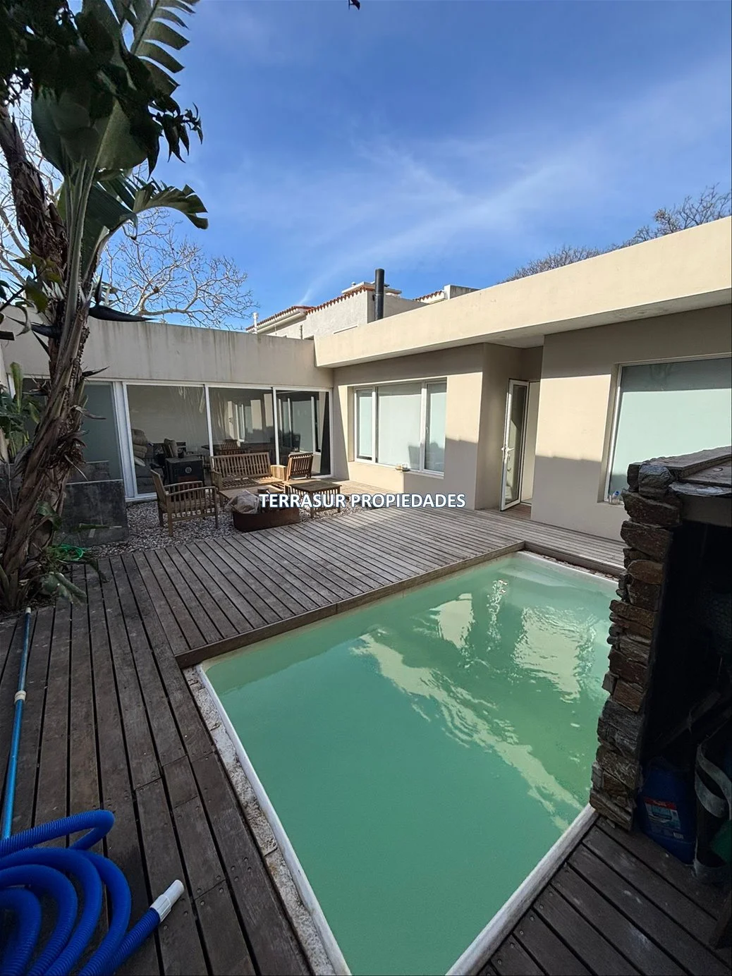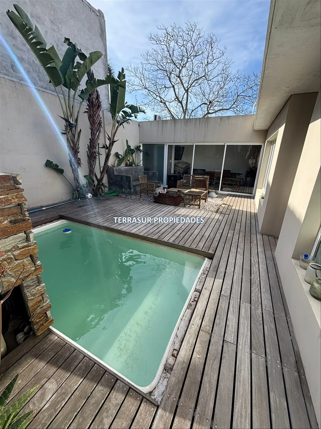Muy linda casa en impecable estado, reciclada, a dos cuadras de la Rambla. Jardín al frente y cochera techada para dos autos y lugar para otro mas. Living comedor amplio con pisos de madera, con una muy linda cocina integrada con barra, muy luminosa. Dos dormitorios, tambien con pisos de madera, uno de ellos, el principal, con baño en suite y vestidor. El otro dormitorio es bien amplio y hay otro baño completo. Equipos de aire acondicionado en todos los ambientes. El fondo cuenta con piscina y deck de madera. Barbacoa cerrada con un baño completo, que tiene tambien entrada independiente. (CW241399)