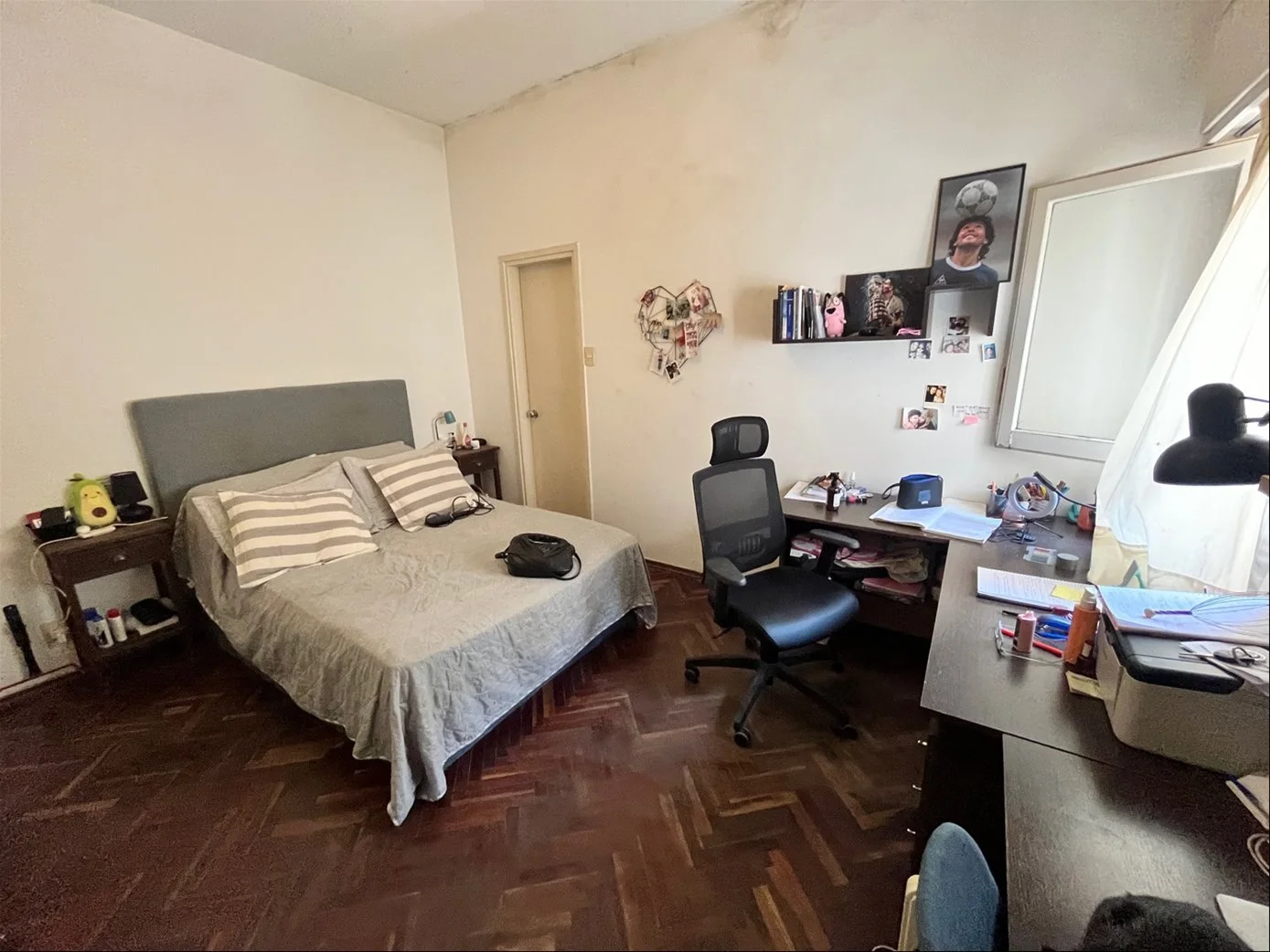 Desde el palier de acceso accedemos a un segundo hall intimo, dos dormitorios con placares, uno de ellos con un ambiente extra (posible vestidor o escritorio) con salida a balcón de servicio, un baño completo y se encuentra aquí la escalera a la segunda planta.