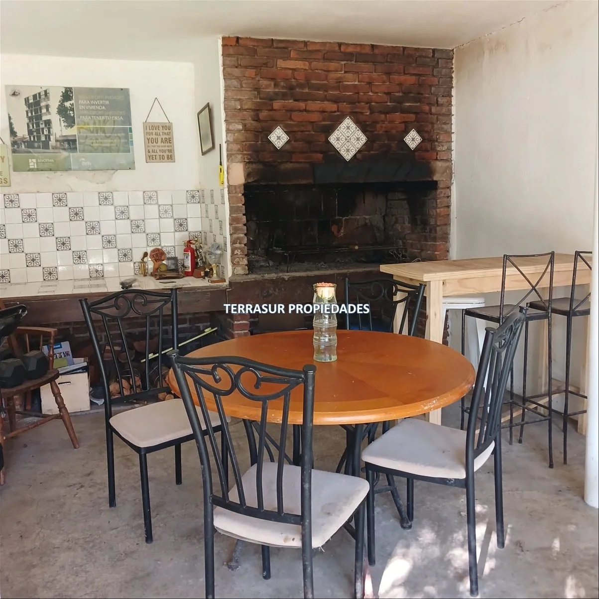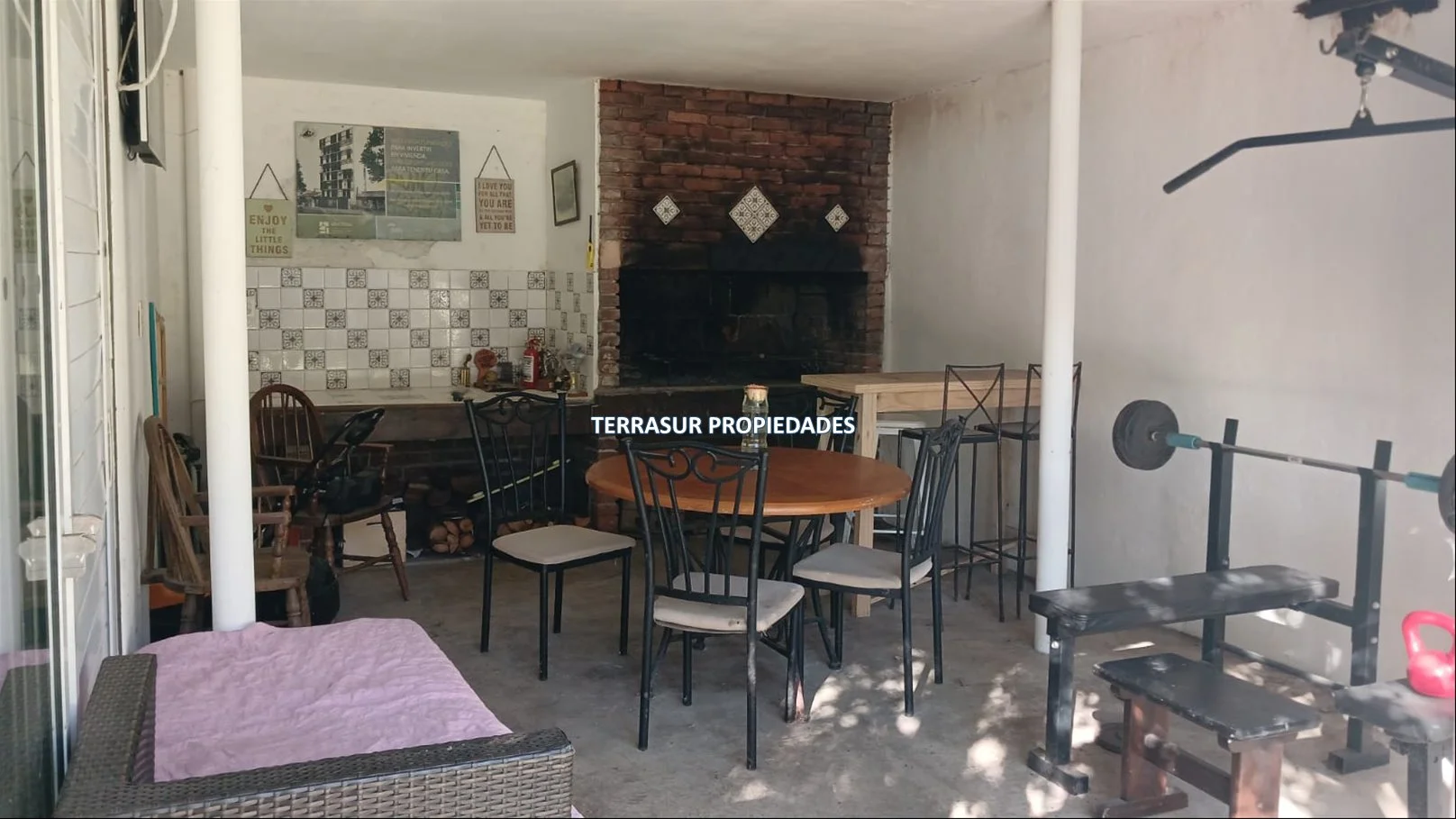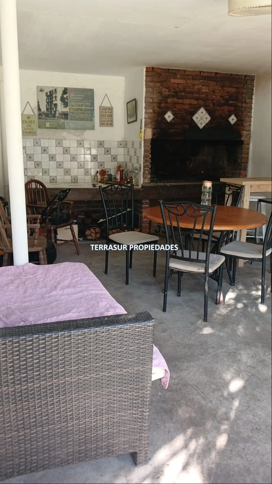 Tiene un lindo fondo verde y barbacoa cerrada con parrillero.