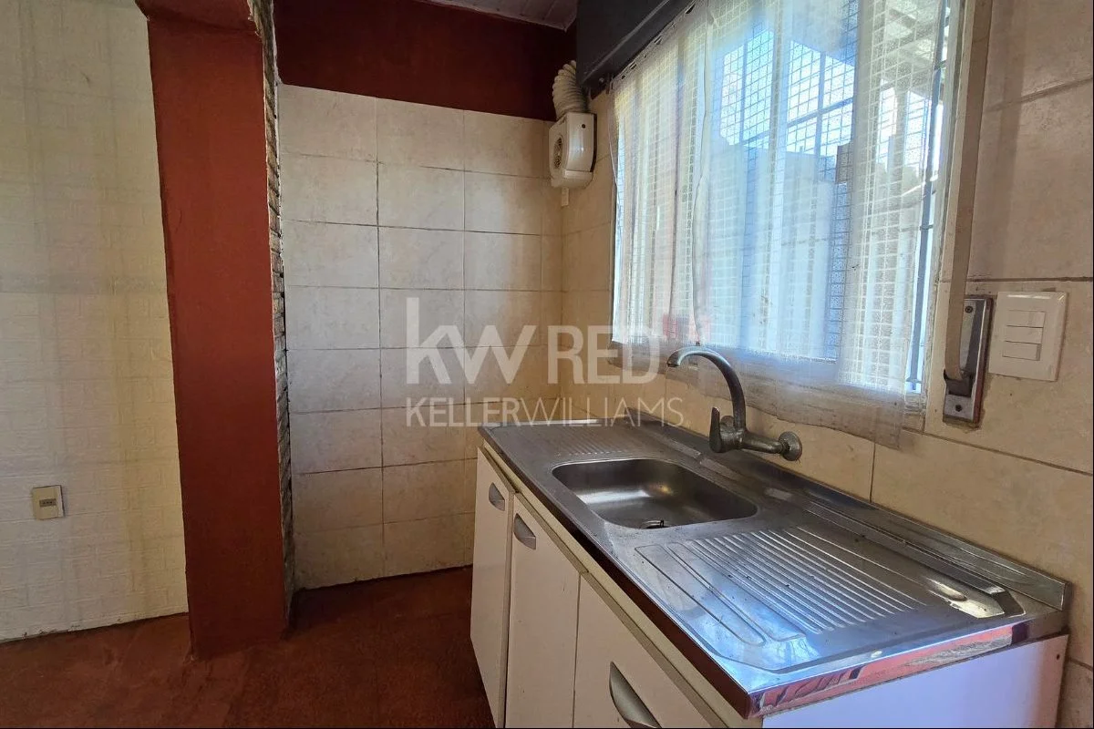 Cocina integrada al living comedor, con buenas ventanas que aportan luz natural.