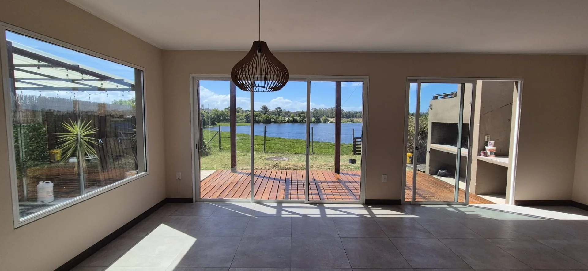 Living comedor muy luminoso. Con amplios ventanales con salida a jardín que cuenta parrillero y vista al lago.