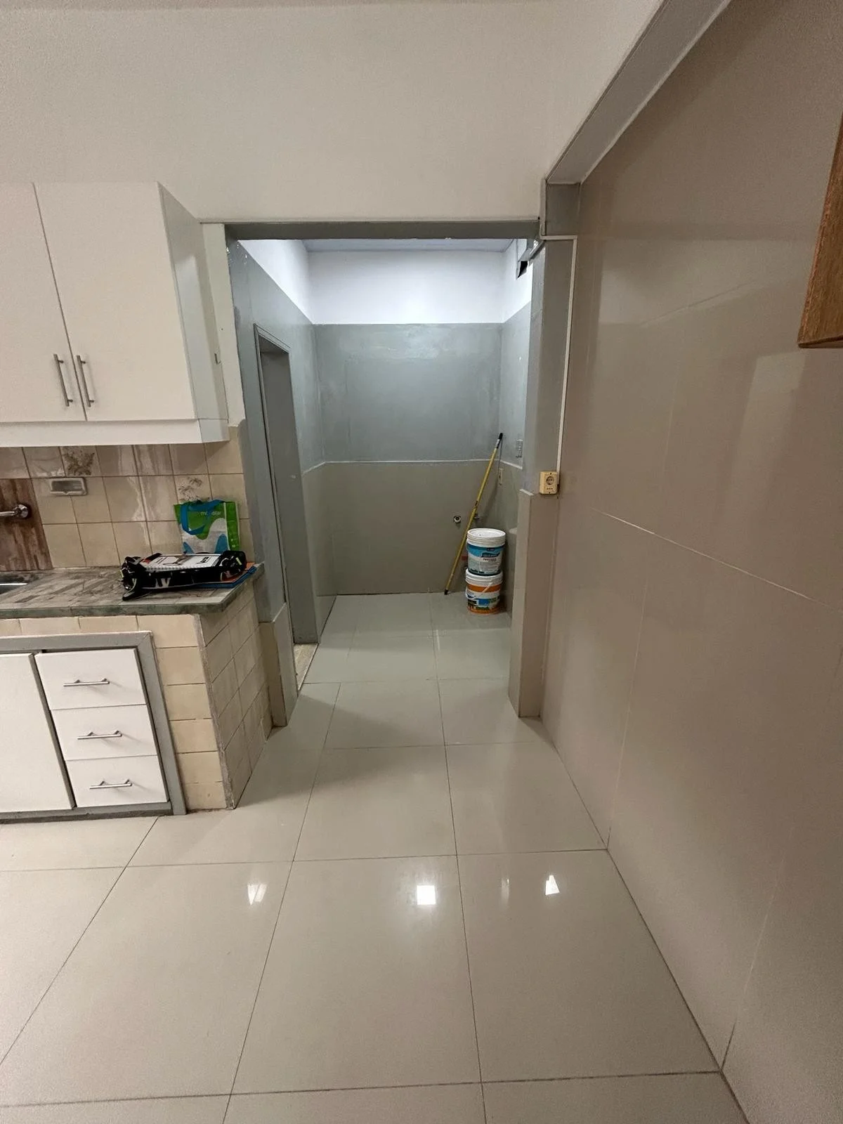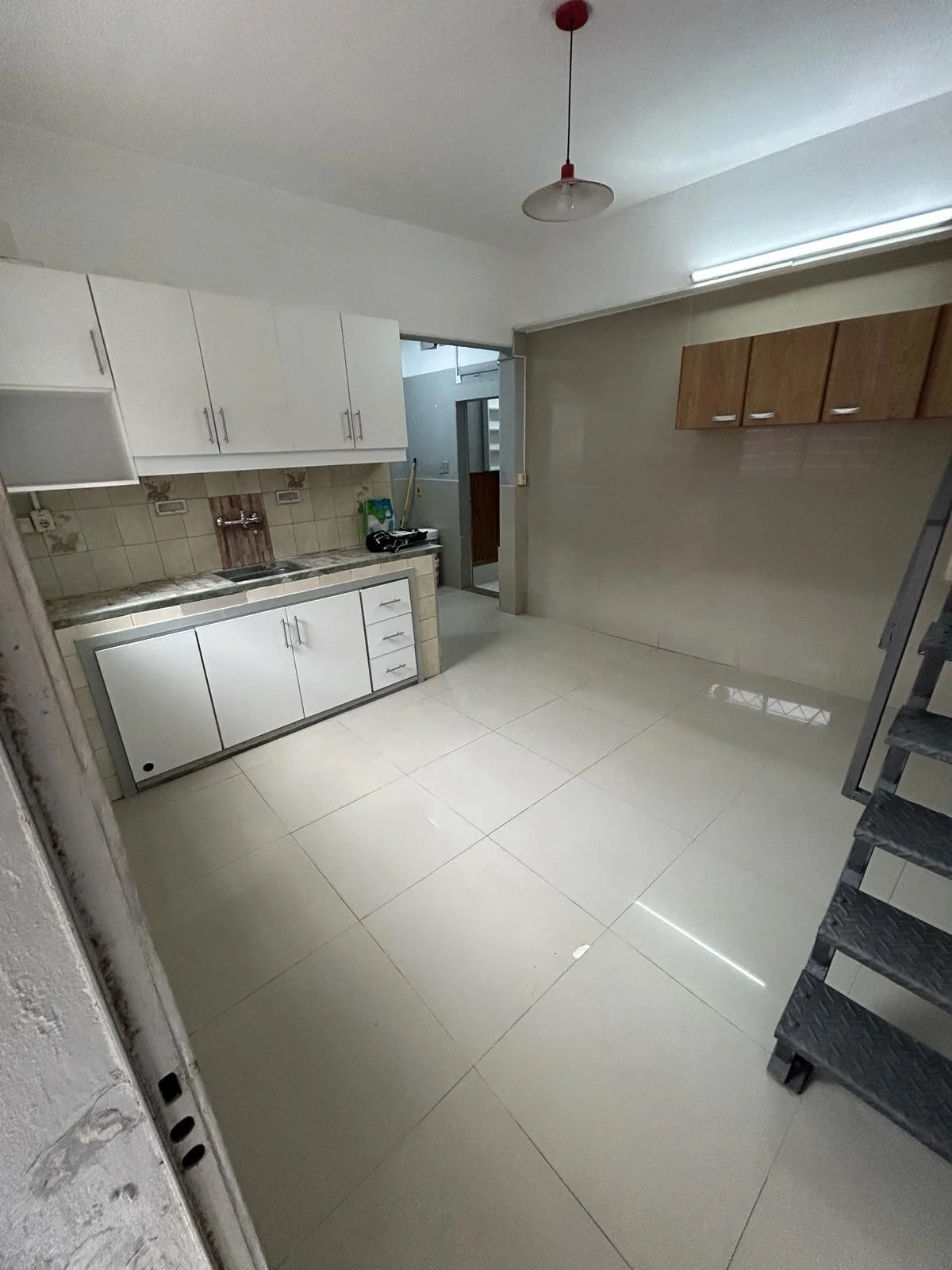 Cocina: pisos de ceramica, con placares bajo y sobre mesada y salida al patio.