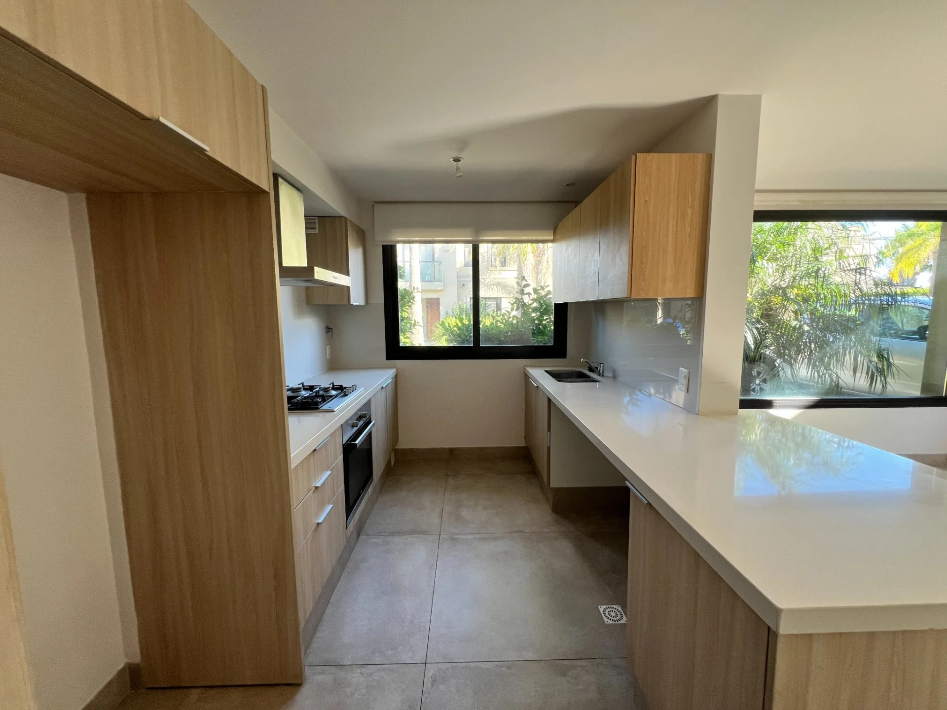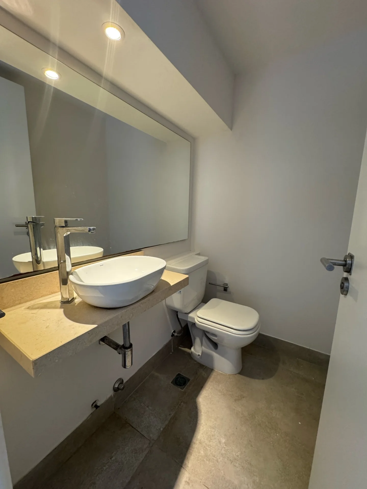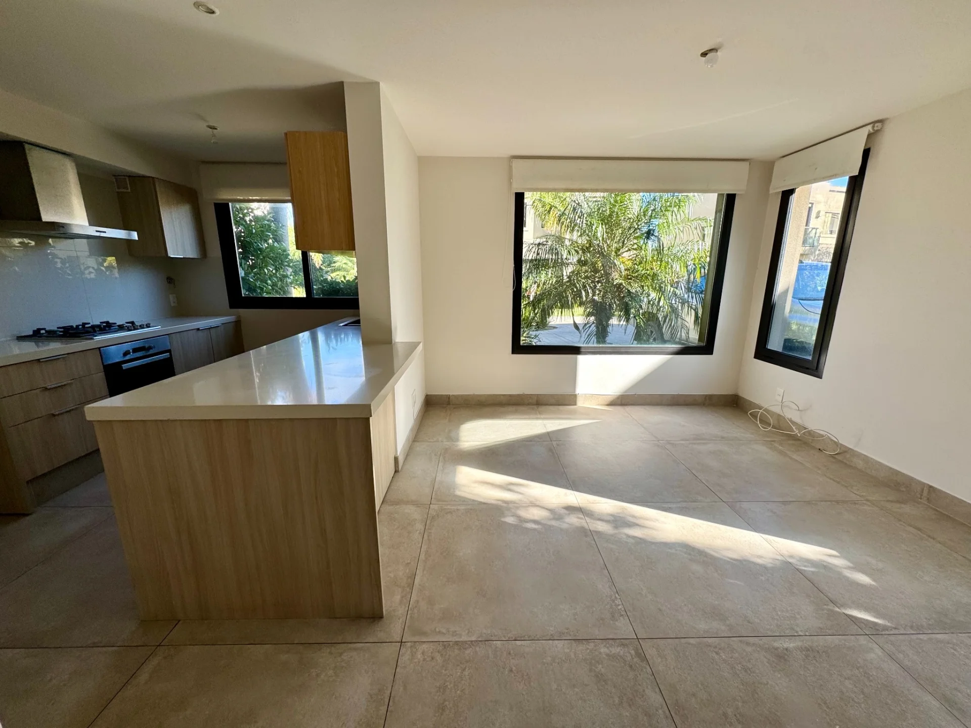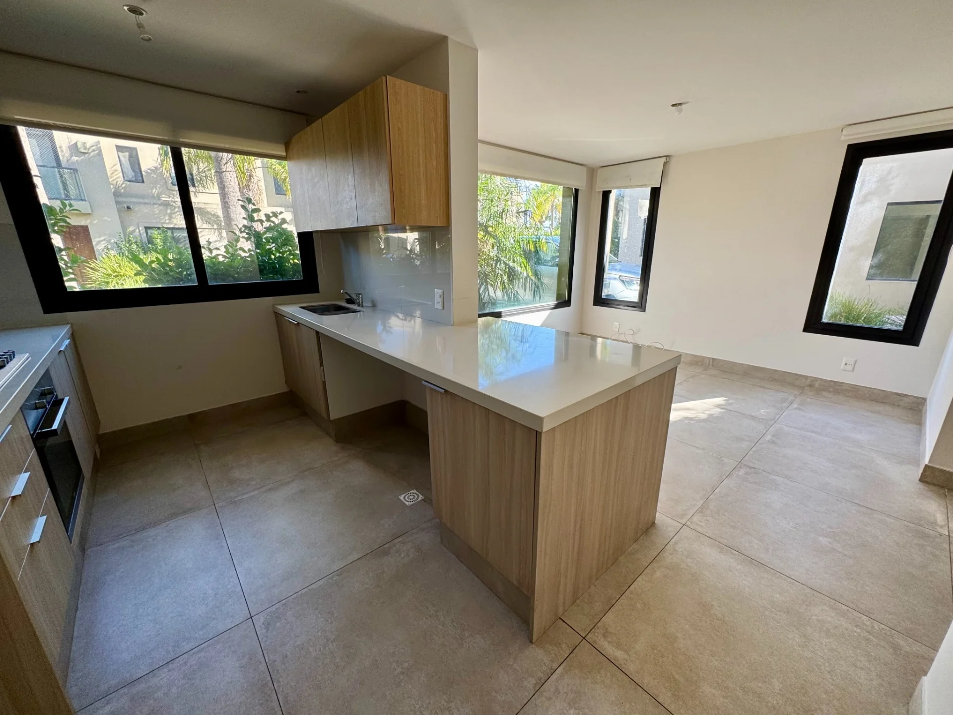 Al otro, un toilette, una cocina semi integrada con barra que de conecta a un estar/playroom o comedor definido.