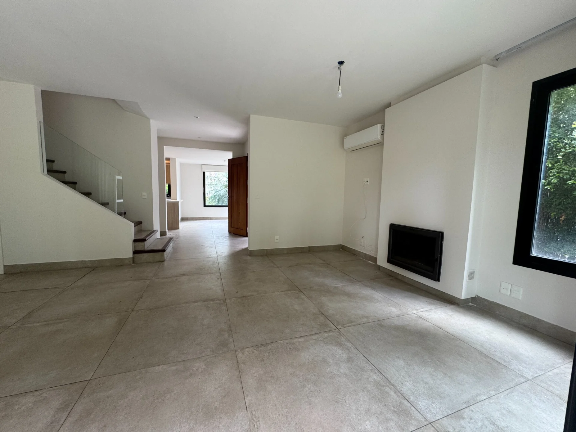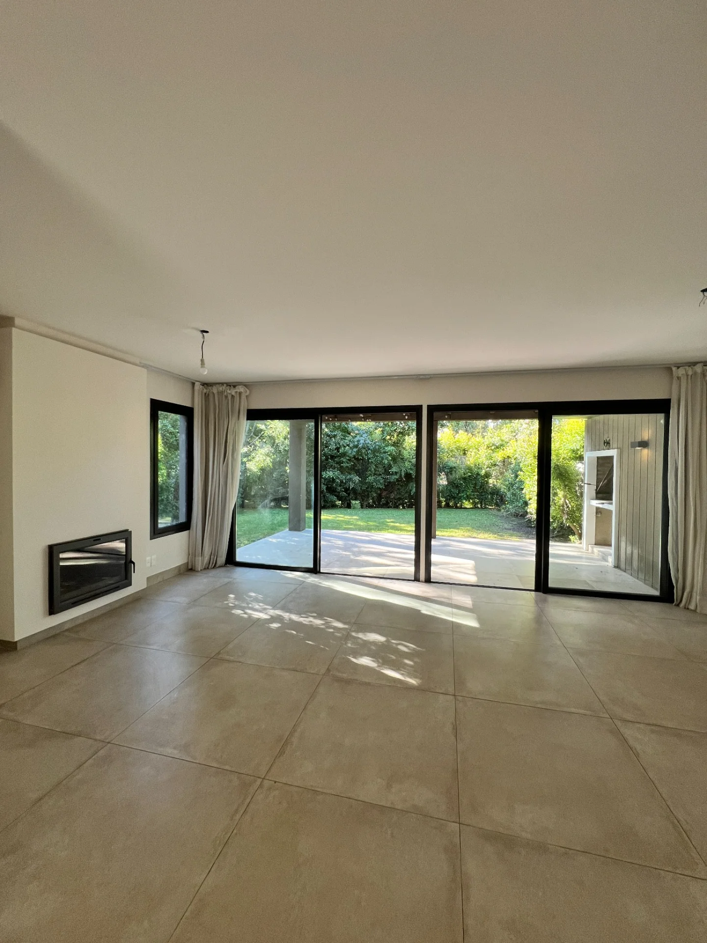 Al ingreso nos encontramos con una recepción que divide la planta baja, a un lado un amplio living orientado al Norte con estufa a leña y salida a una pérgola muy disfrutable con parrillero.