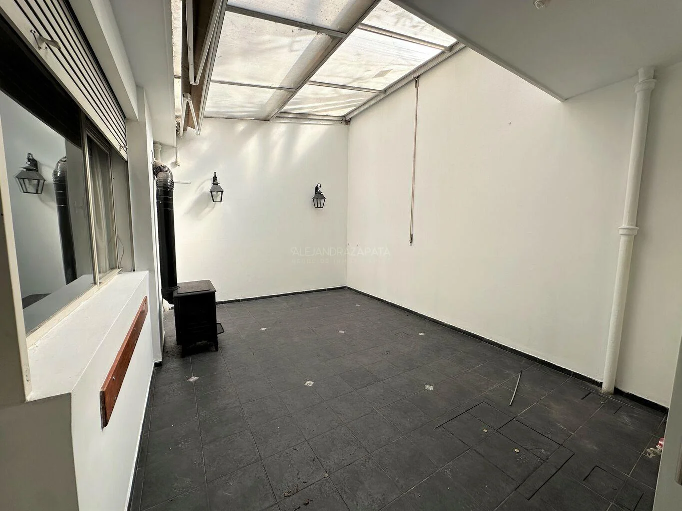 Patio techado con toldo eléctrico, que se puede volver a abrir y se transforma en un patio de unos 24 m.c.