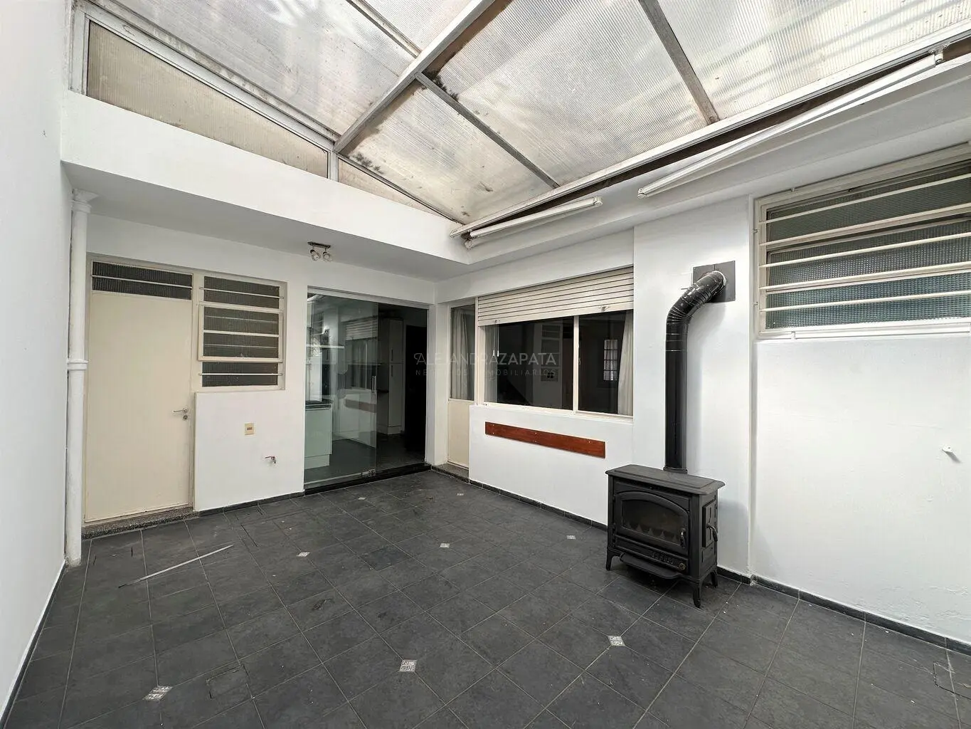 Hall de distribución con estufa a leña de alto rendimiento. Baño social completo.