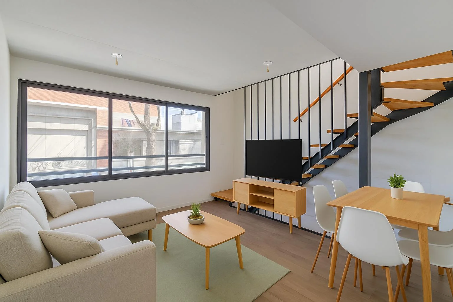 Al ingresar a la propiedad, te recibe un cómodo recibidor que conecta con el garaje independiente y un práctico baño social. Subiendo al primer nivel, encontrarás un amplio living-comedor de concepto abierto, diseñado para disfrutar de un ambiente luminoso y acogedor, ideal para la vida diaria. La cocina integrada, con muebles bajo y sobre mesada y equipada con campana extractora, aporta modernidad y funcionalidad al espacio.