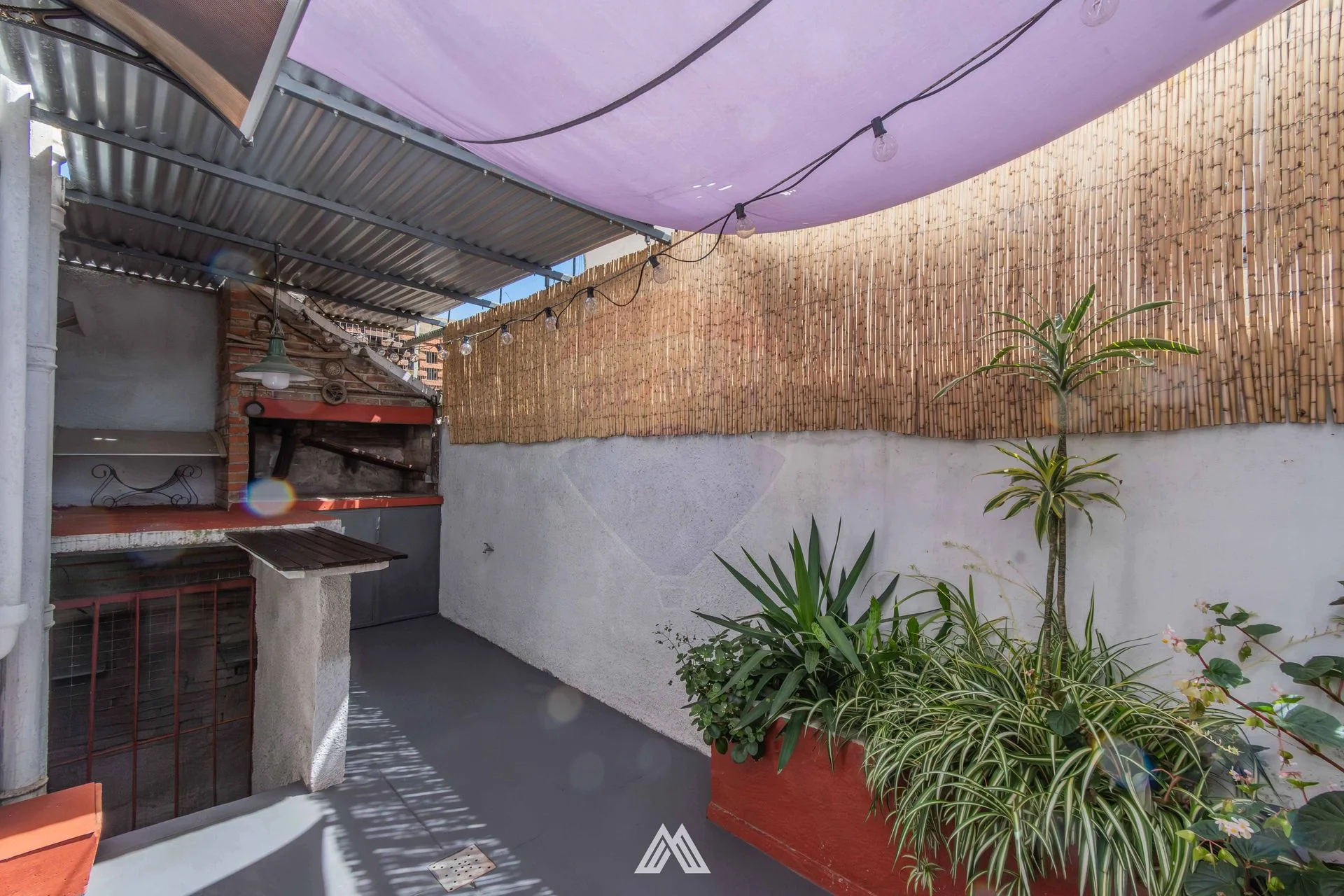 -Patio con parrillero y acceso a un sótano, ideal para depósito.