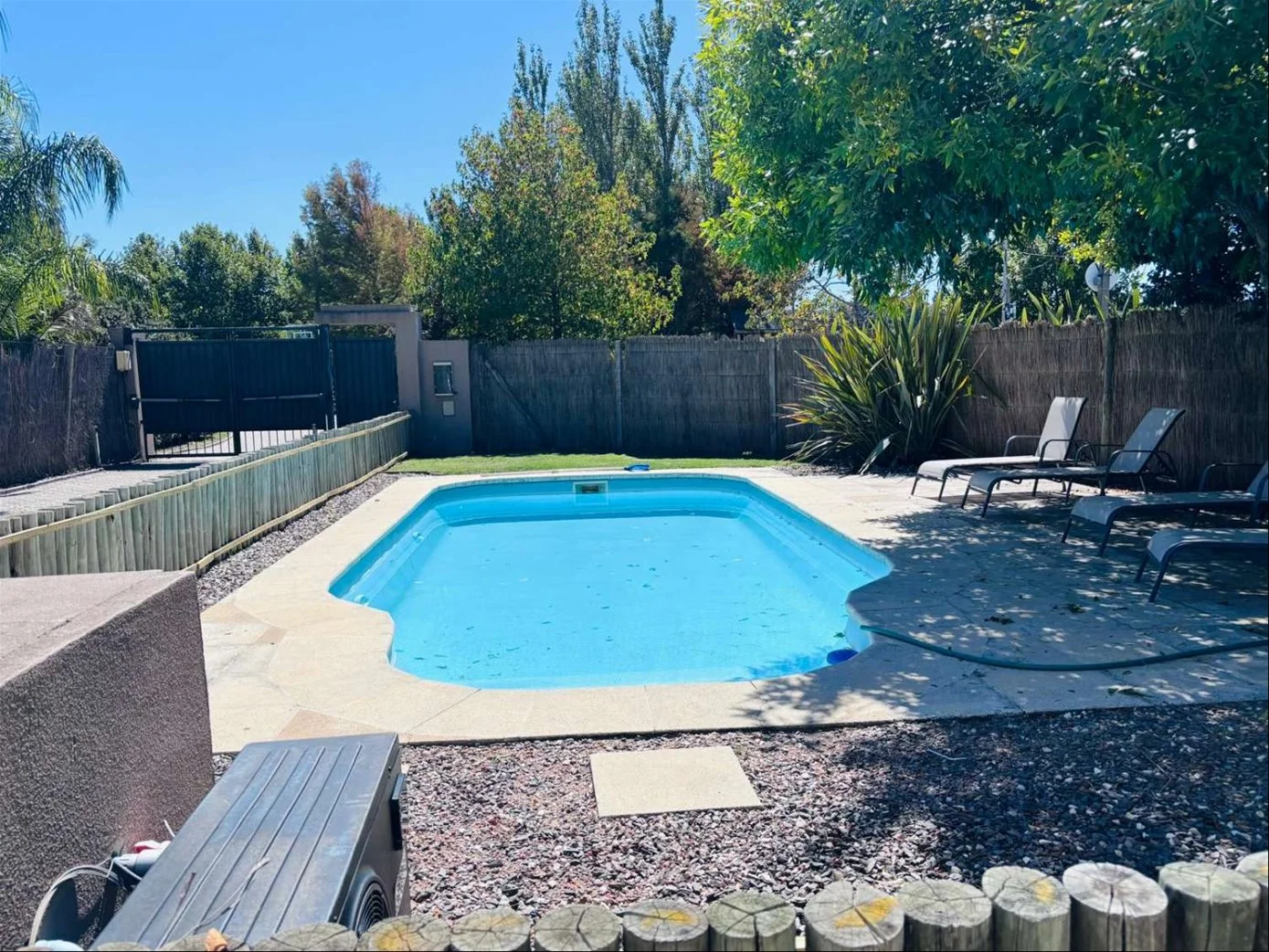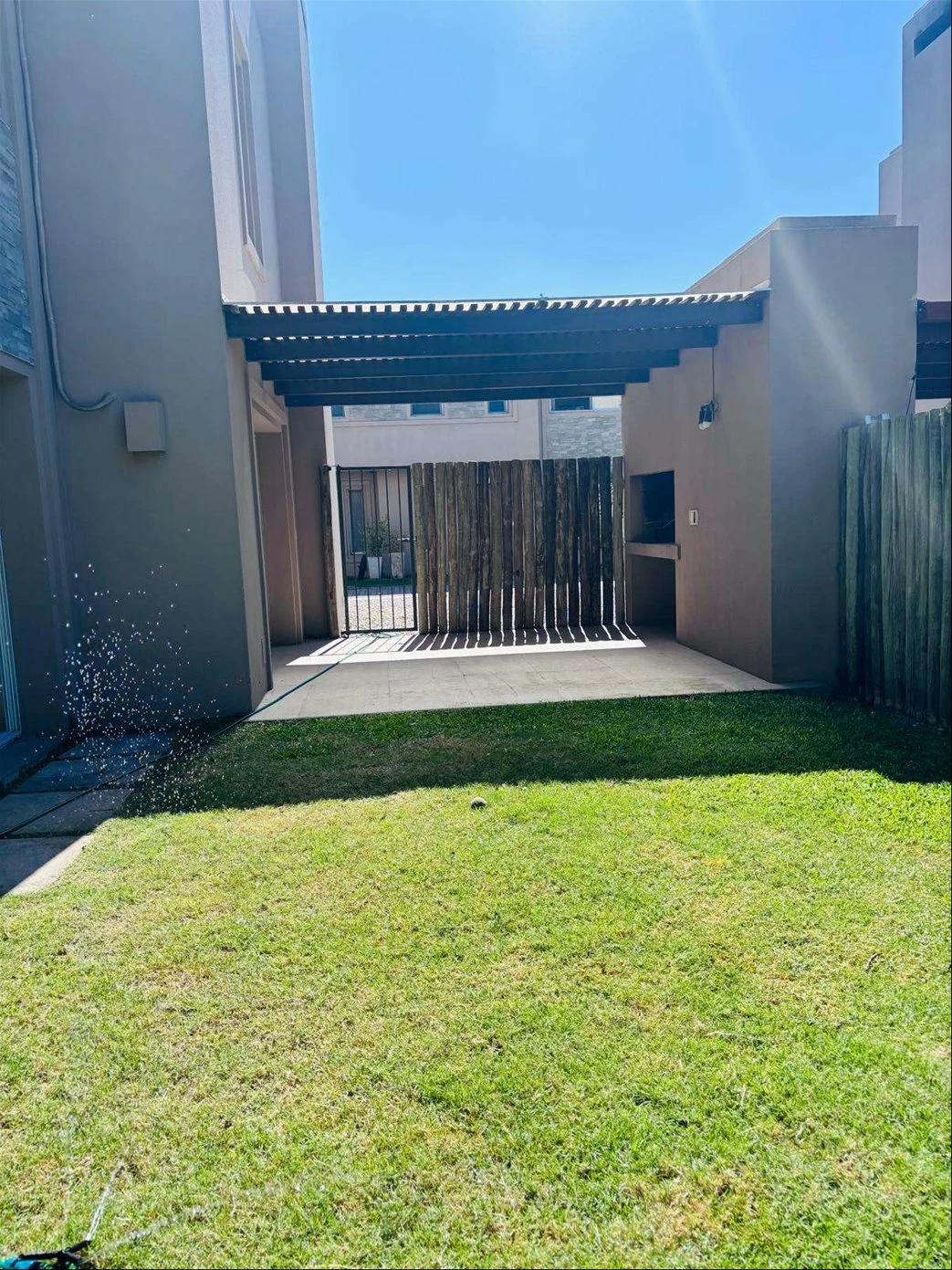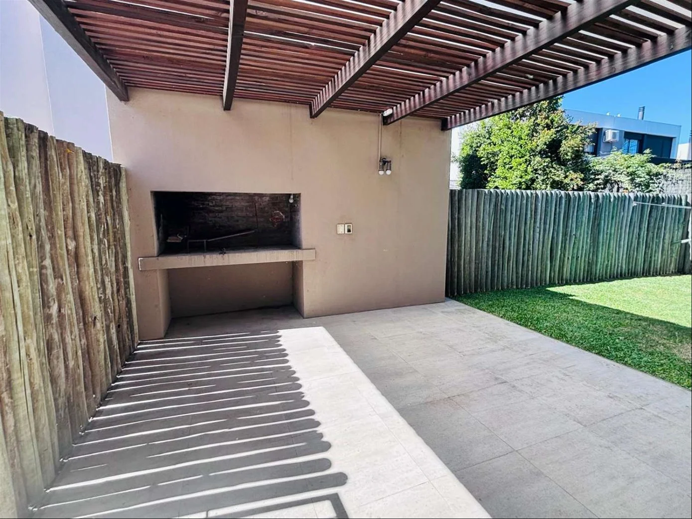 Agradable fondo con parrillero techado con pérgola y policarbonato