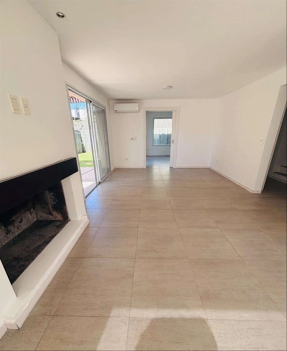 Amplio living comedor con estufa a leña