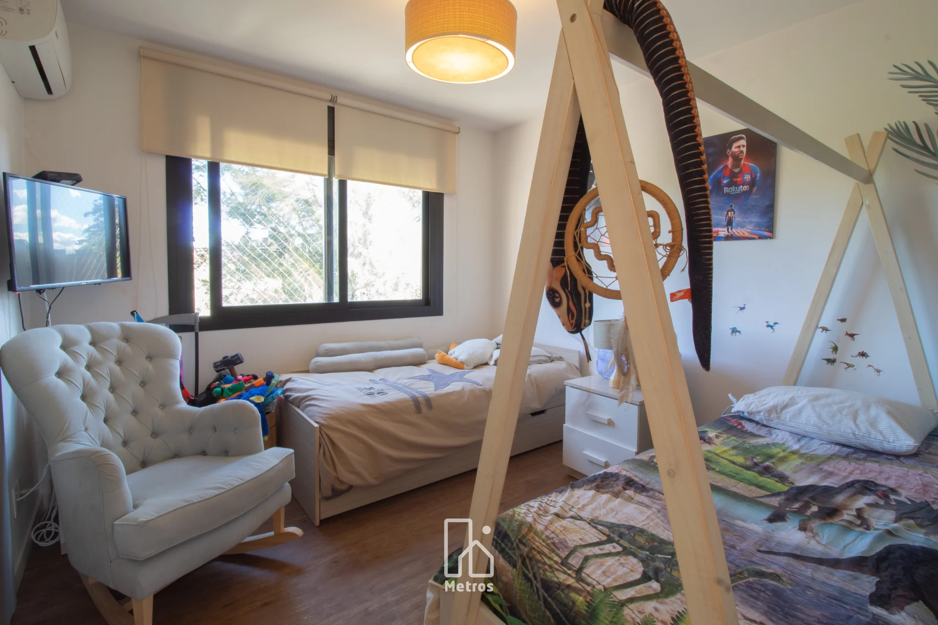 En planta alta se ubican tres dormitorios y dos baños completos. El principal cuenta con walk-in closet y baño en suite, brindando mayor confort e intimidad.
