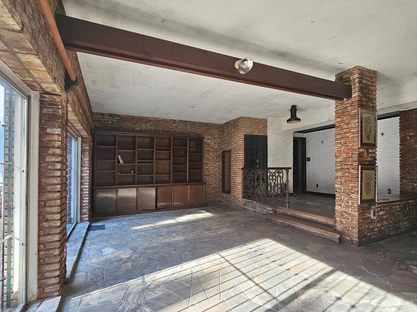 - Living comedor amplio con vista al patio. Estufa a leña. Pisos de piedra, y paredes de ladrillo: Ambientes muy cálidos.