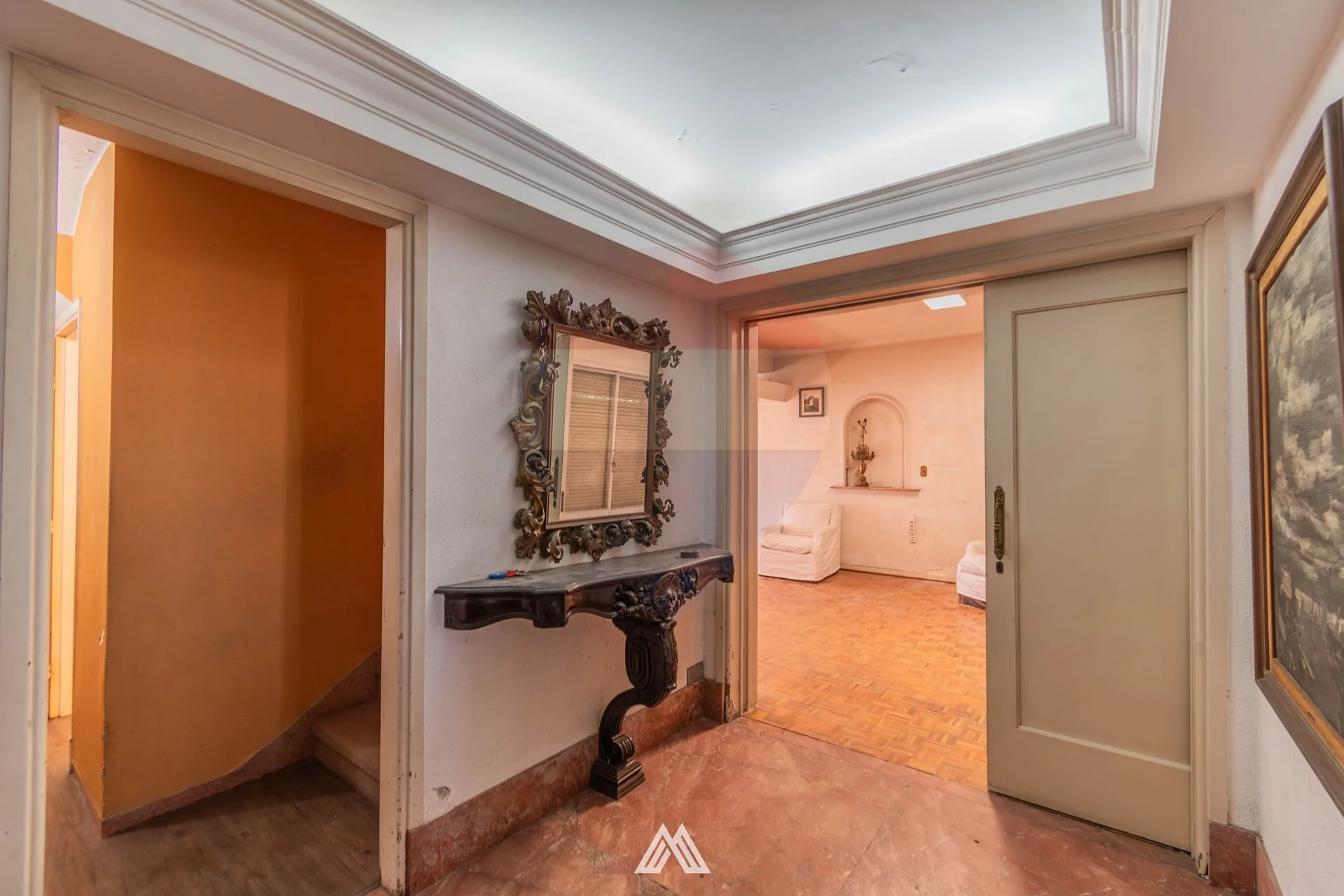 En planta baja se encuentra la recepción, con un amplio escritorio al frente. Un gran living con ventanal al frente y persianas automáticas.