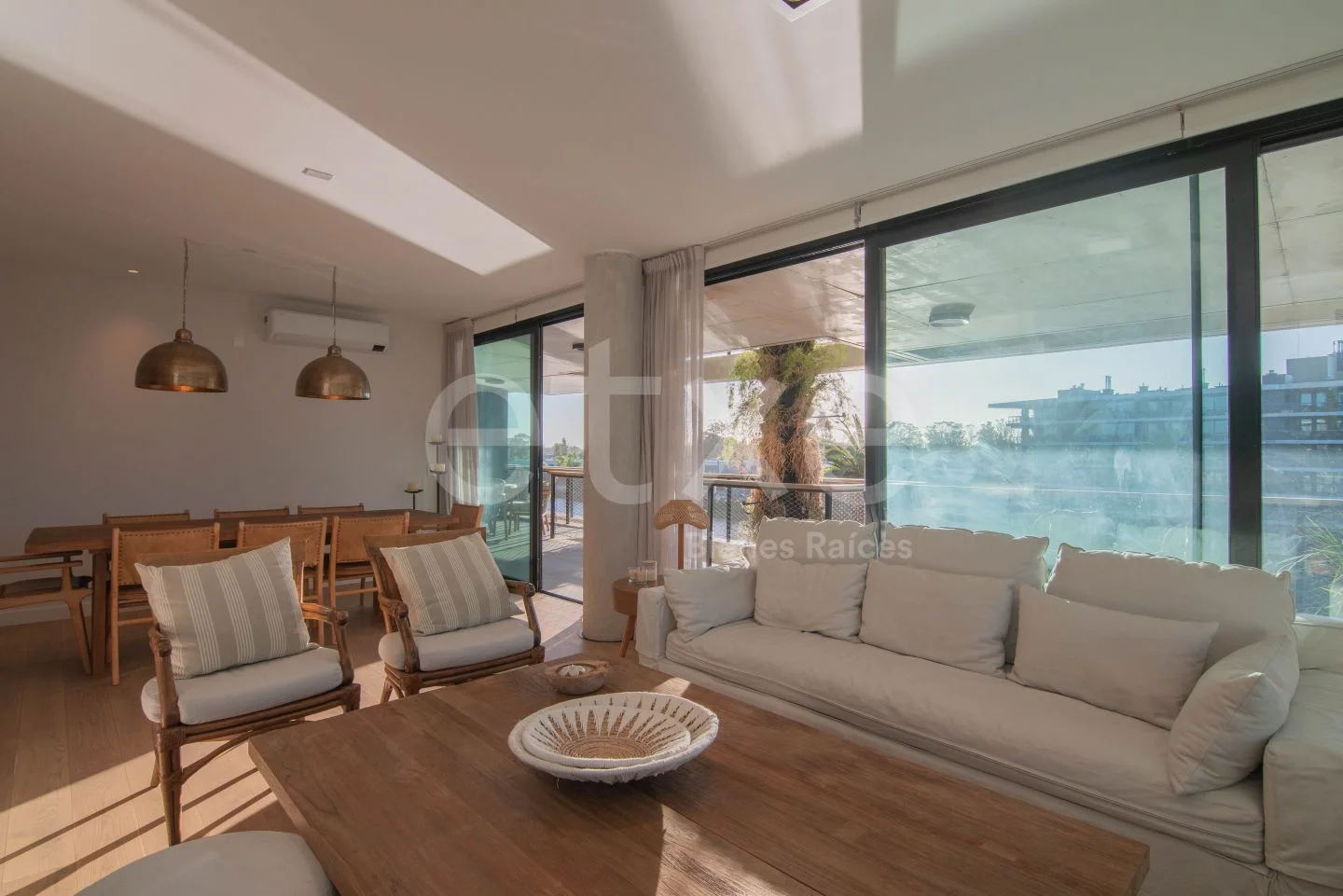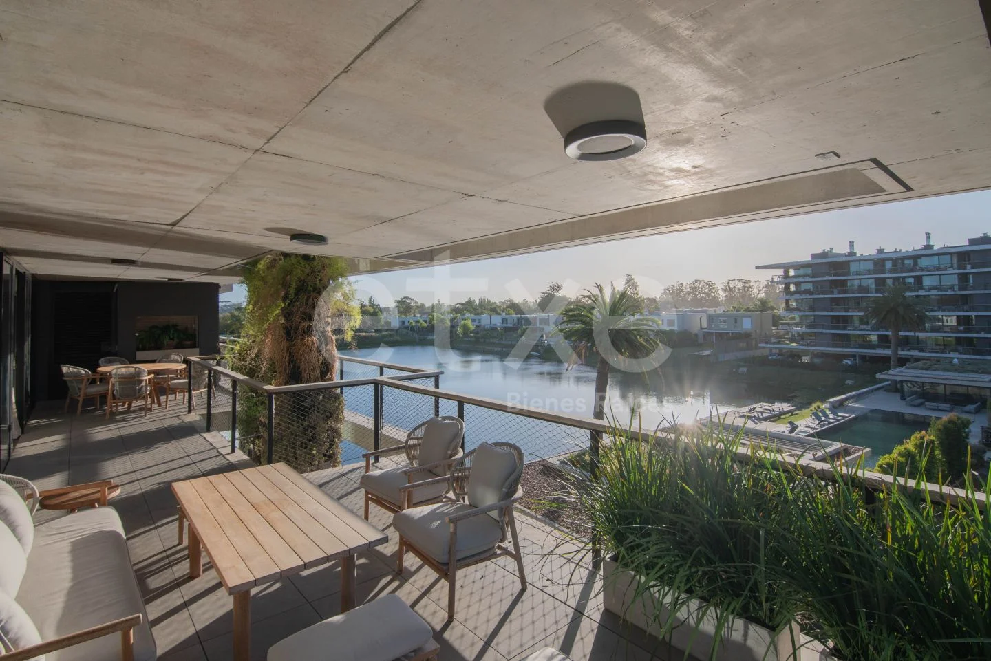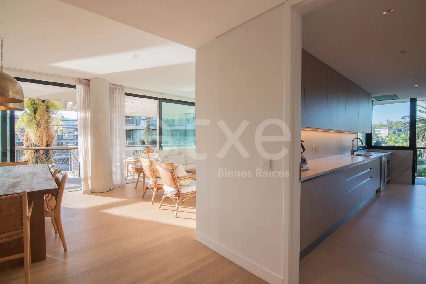 Se ingresa a pasillo con toilette. Enorme living comedor con acceso a una amplia terraza de casi 16 metros de largo la cual cuenta con esclenete orientación, parrillero y vista al lago.