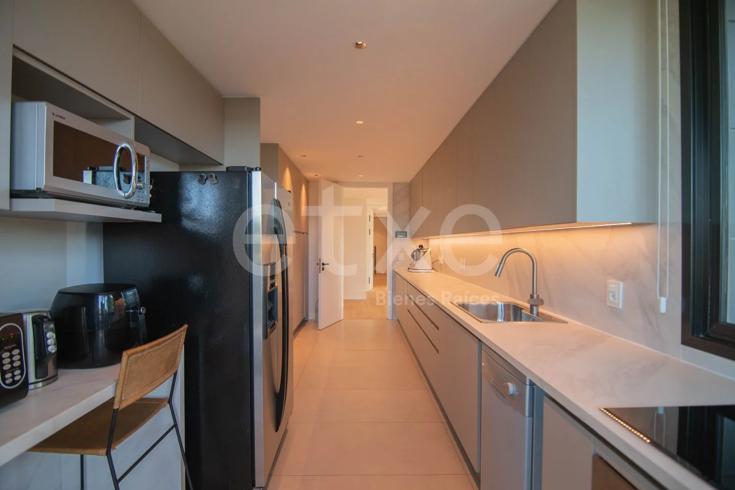 Cocina definida con terraza y sector de servicio el cual incluye dormitorio, baño completo y sector de lavadero.
