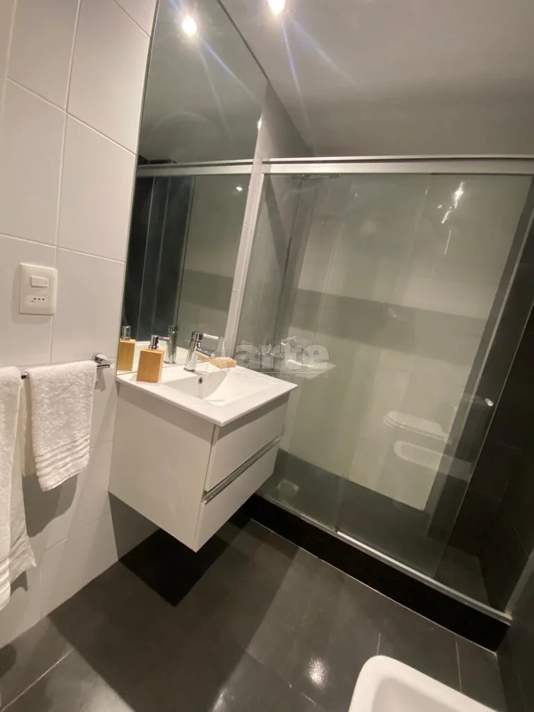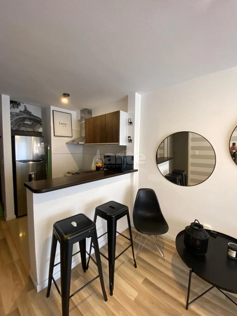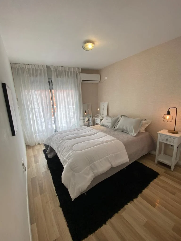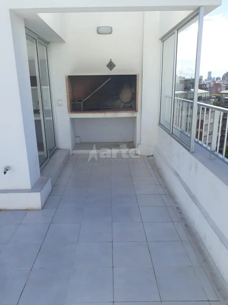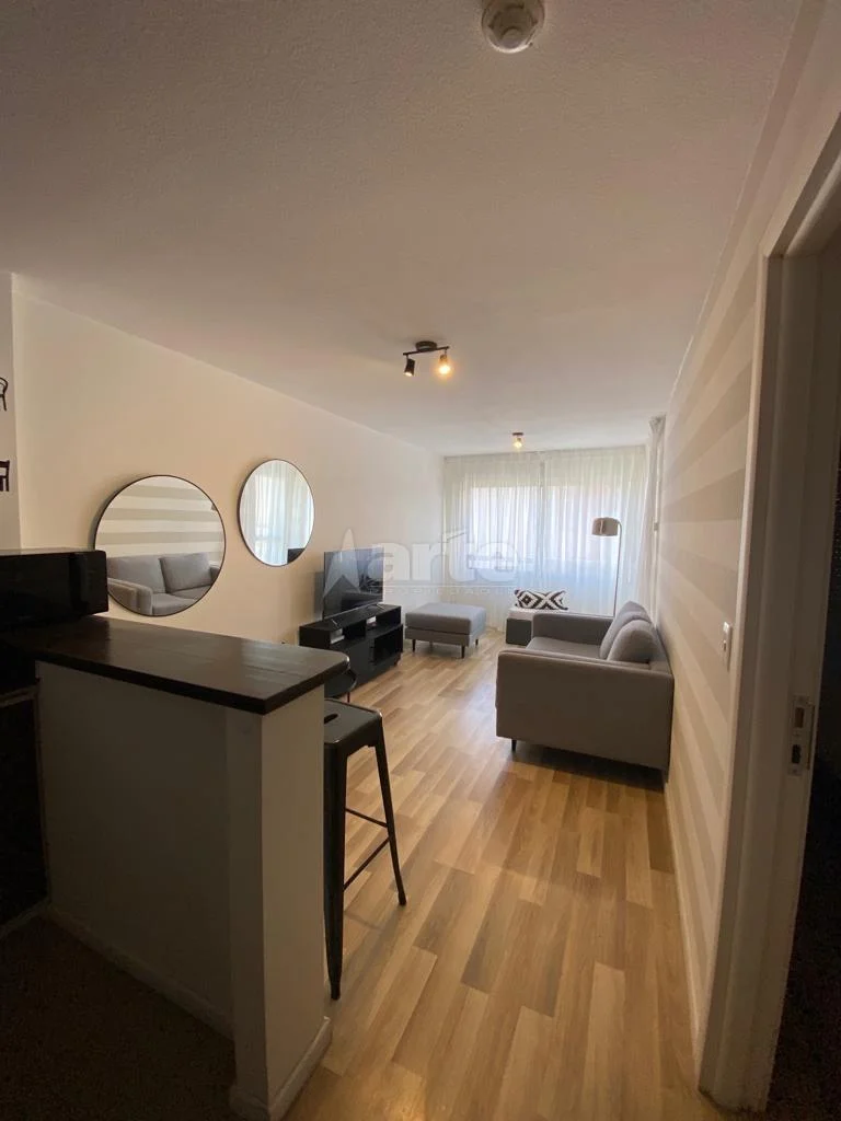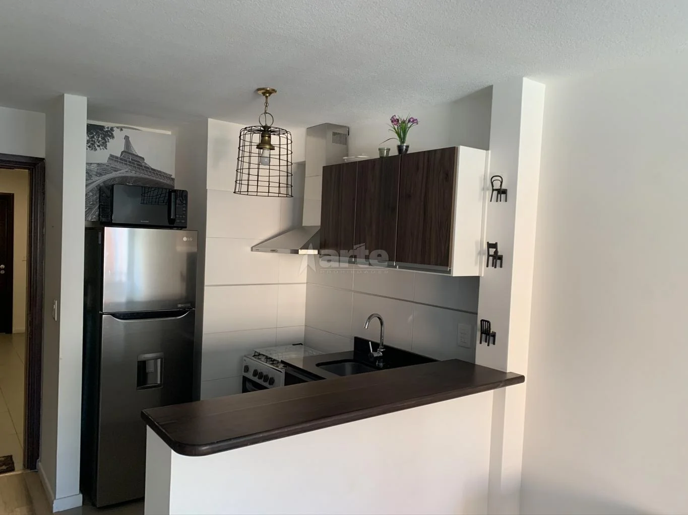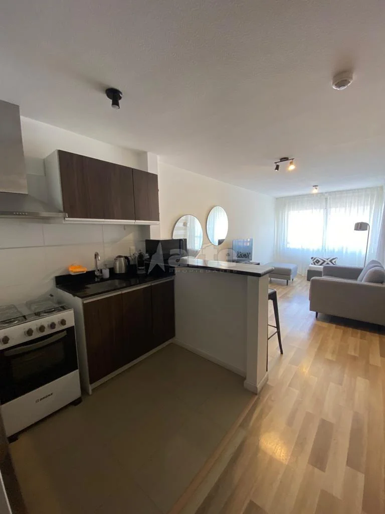 Living con muy buena vista despejada, orientación Norte (todo el sol), dormitorio con placard y salida a agradable terraza. Cocina integrada con barra y baño completo.