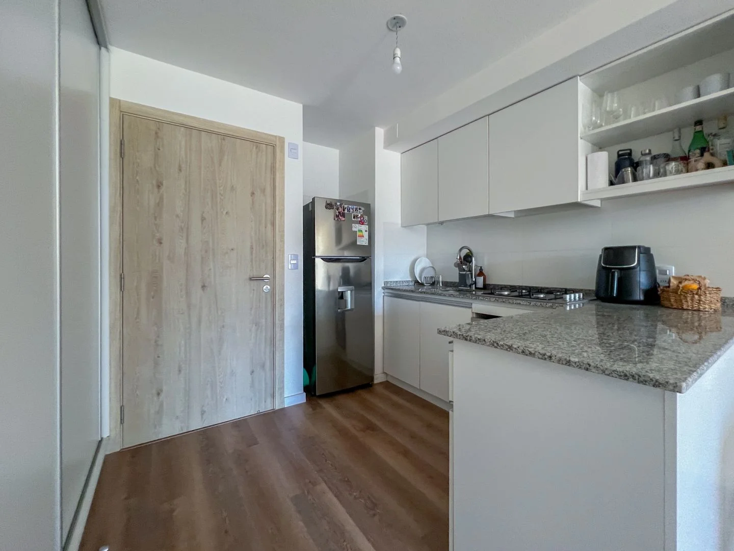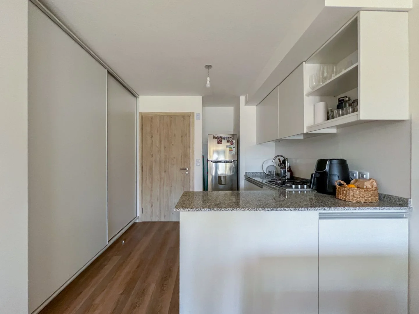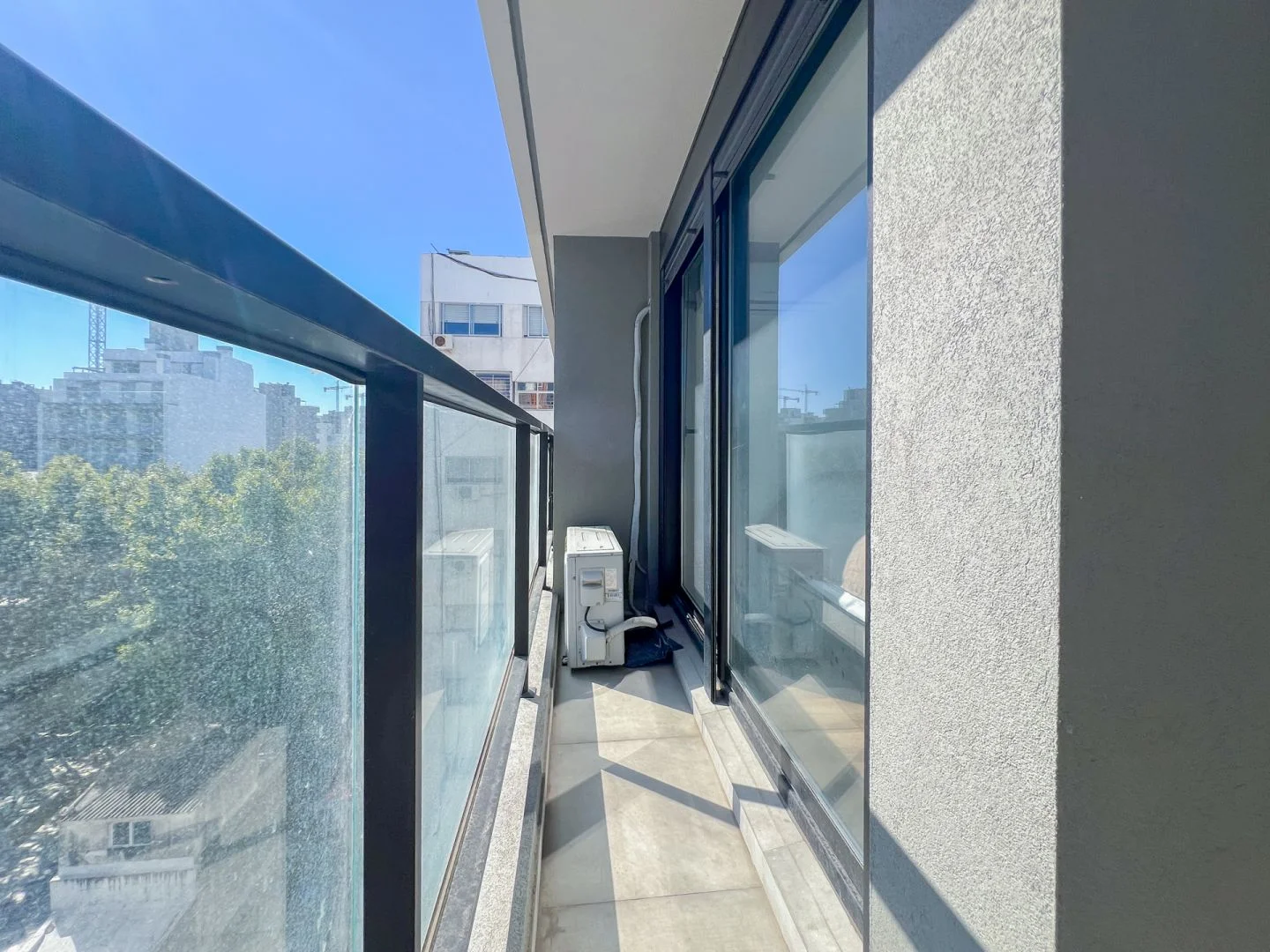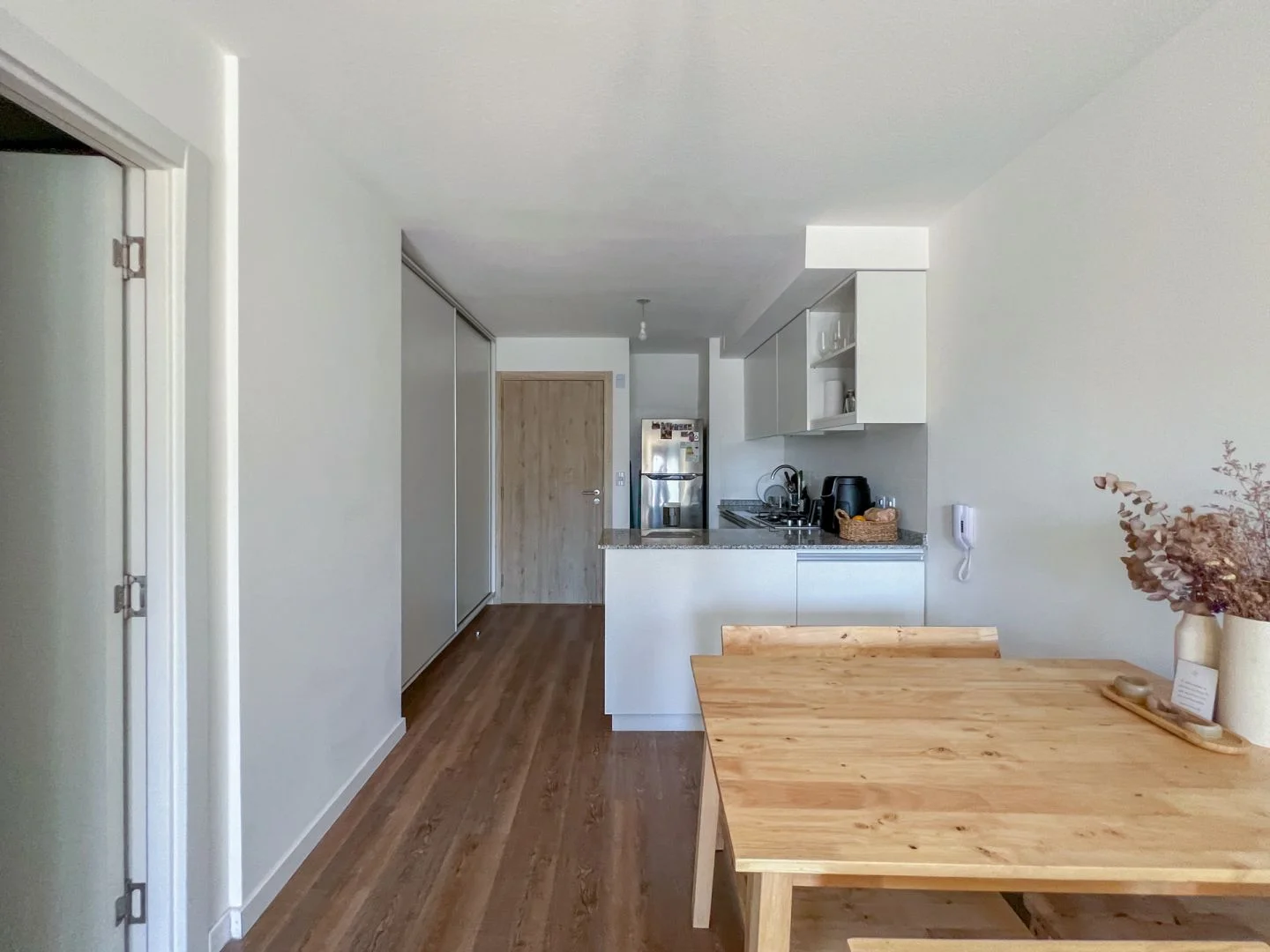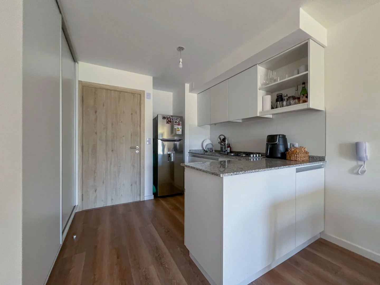 Compuesto por living comedor y dormitorio, ambos con salida al balcón, cocina semi-integrada con placares bajo y sobre mesada y baño completo con espacio para lavarropas y calefón.