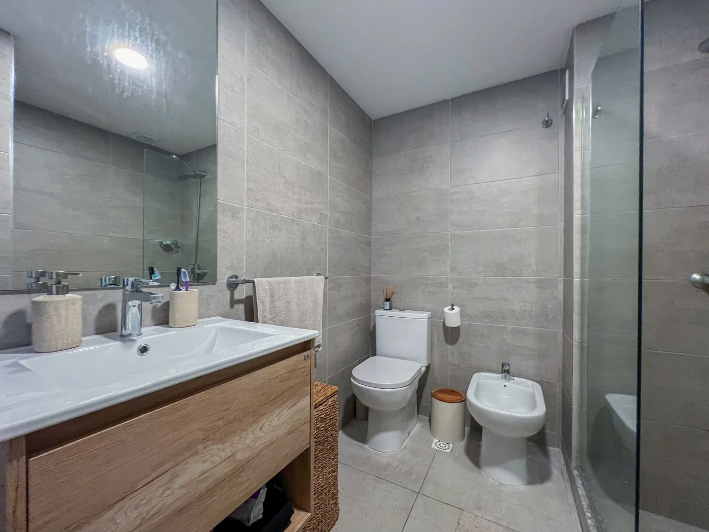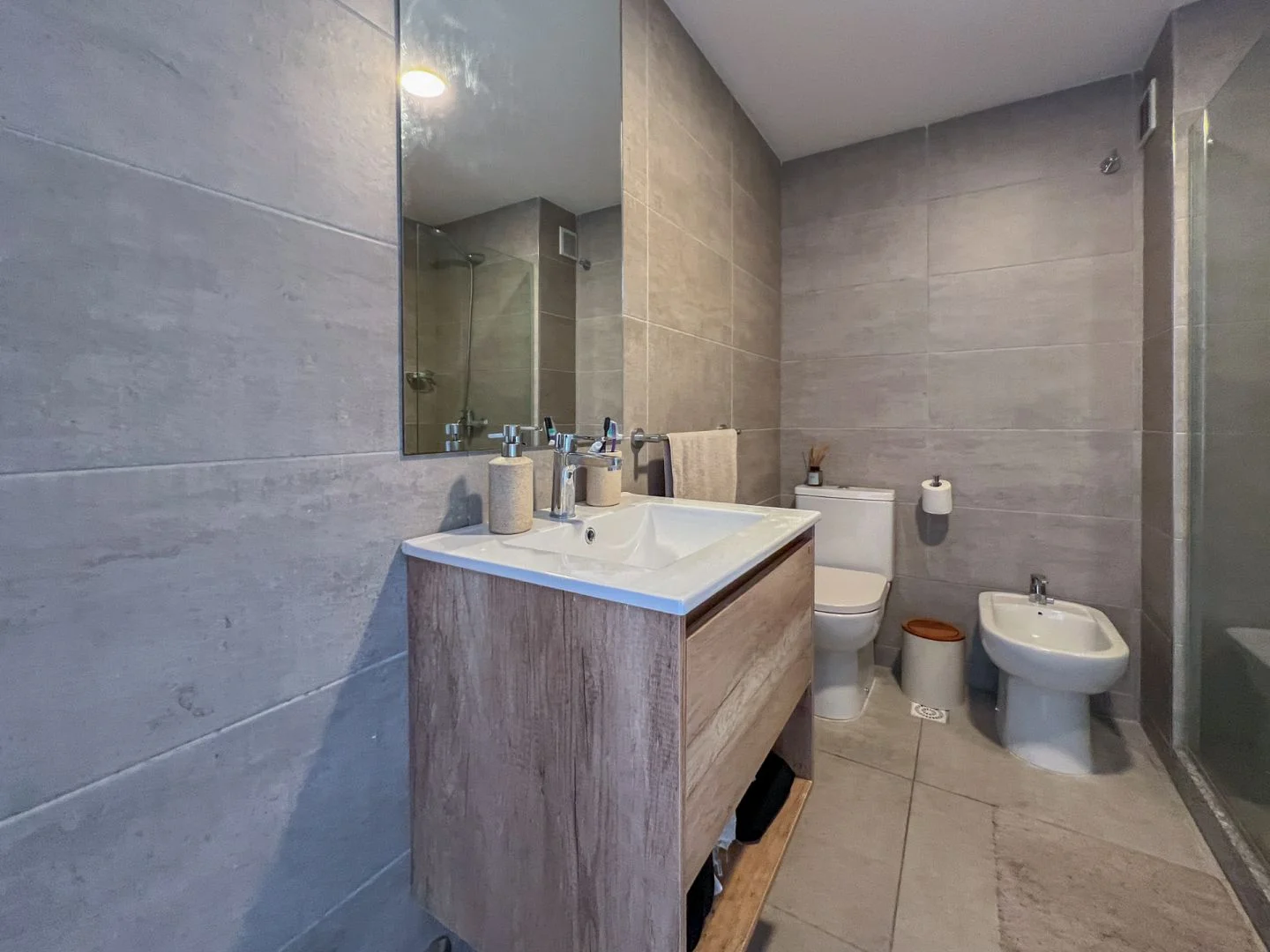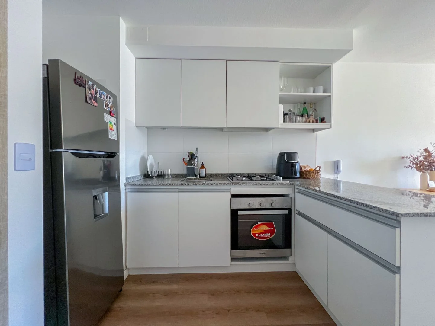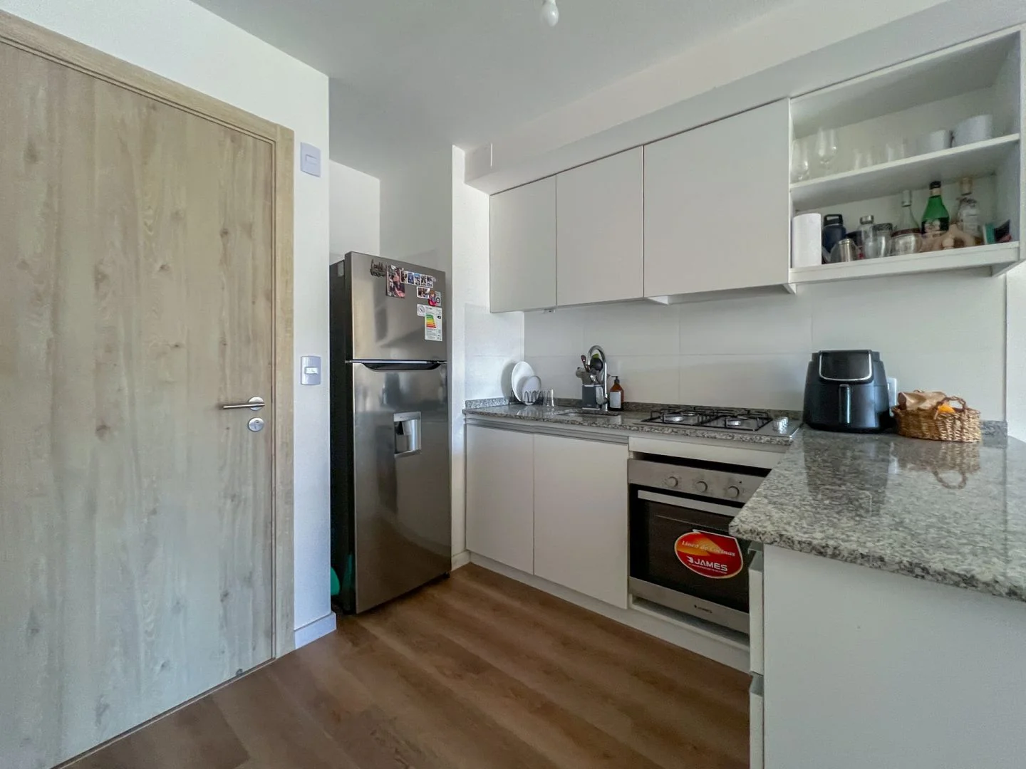 Cuenta aberturas doble vidrio con persiana integrada en los dos ambientes, aire acondicionado en living-comedor, horno, anafe y extractor en cocina, placard en el dormitorio, calefón, placard, espejo y mampara de vidrio fijo en el baño.