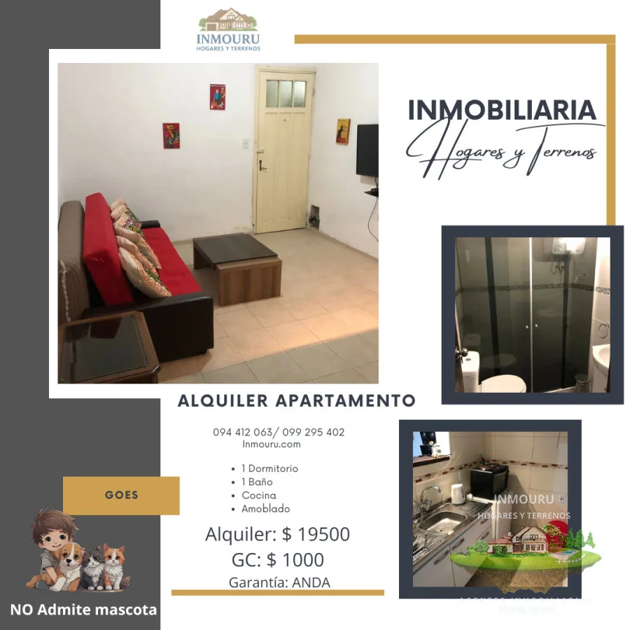 Apartamento en Goes - Montevideo (Porongos esquina Vilardebo) Se entrega semiamueblado incluyendo : - cama de dos plazas con respaldo -mesas de luz -soporte TV -ropero -sillón -1 televisor 40 pulgadas -escritorio -Calefon -frigobar -hornito pequeño , con función horno y dos hornallas superiores Porongos 2708 esquina Vilardebo Alquiler: $ 19500 Gc: $1000 Garantías: Anda Acepta Mascota Consulte con nuestros asesores. Referencia Interna : Tera-2280