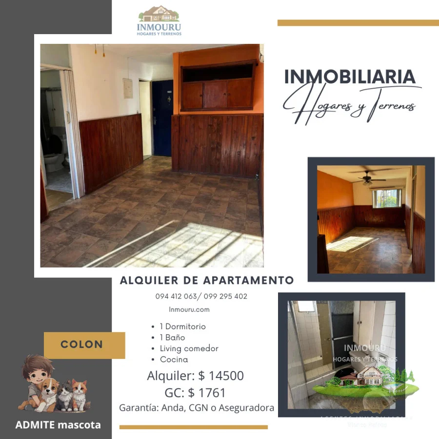 Apartamento en Colón – Montevideo Cno. José Durán esquina Yegros Apartamento en 2º piso por escalera, muy luminoso y con excelente ventilación. Ubicado en una zona tranquila y con todos los servicios cercanos. Características: Living comedor amplio y luminoso Cocina definida con terraza lavadero 1 dormitorio con luz natural Baño completo en excelente estado Acepta mascotas Condiciones: Alquiler mensual: $14.500 Gastos comunes: $1.761 Garantías aceptadas: ANDA, CGN o aseguradoras Garaje disponible en alquiler: aprox. $1.800 Consulte con nuestros asesores y coordine su visita. Referencia Interna : Tera-2302