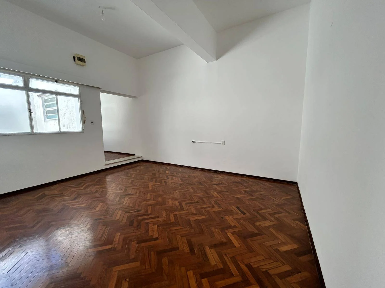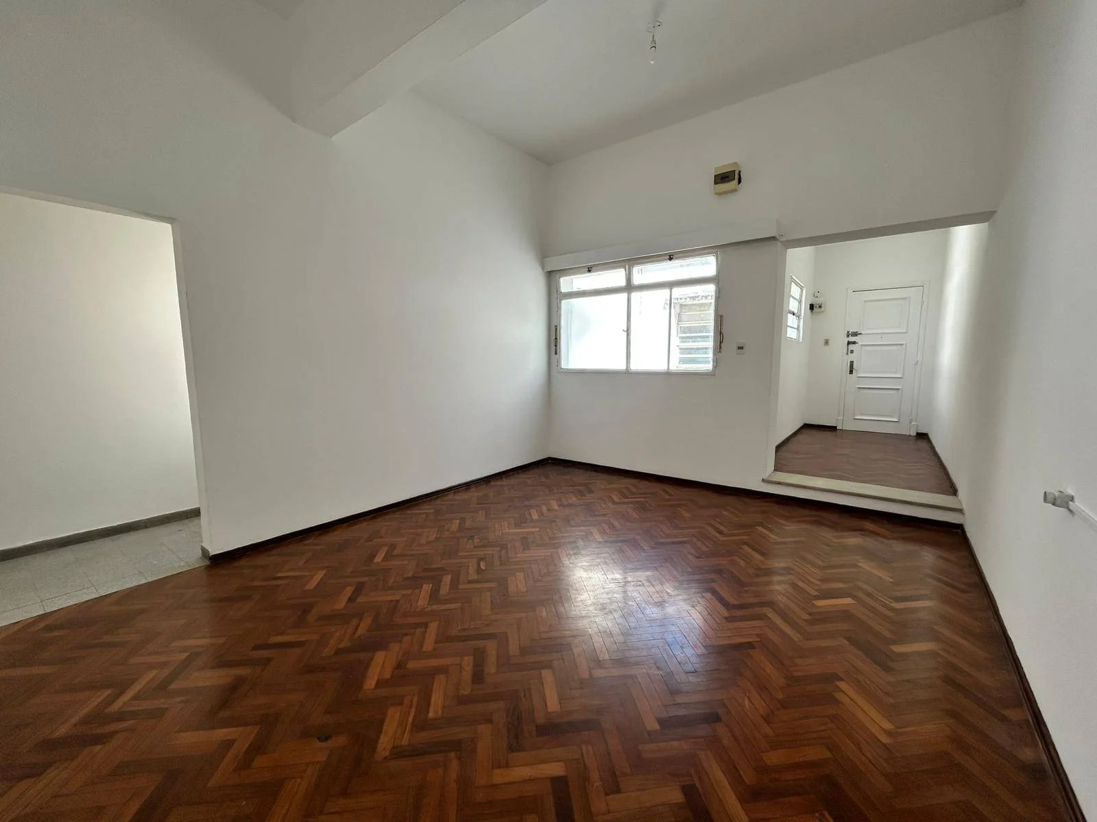 Amplio living comedor con piso de parquet