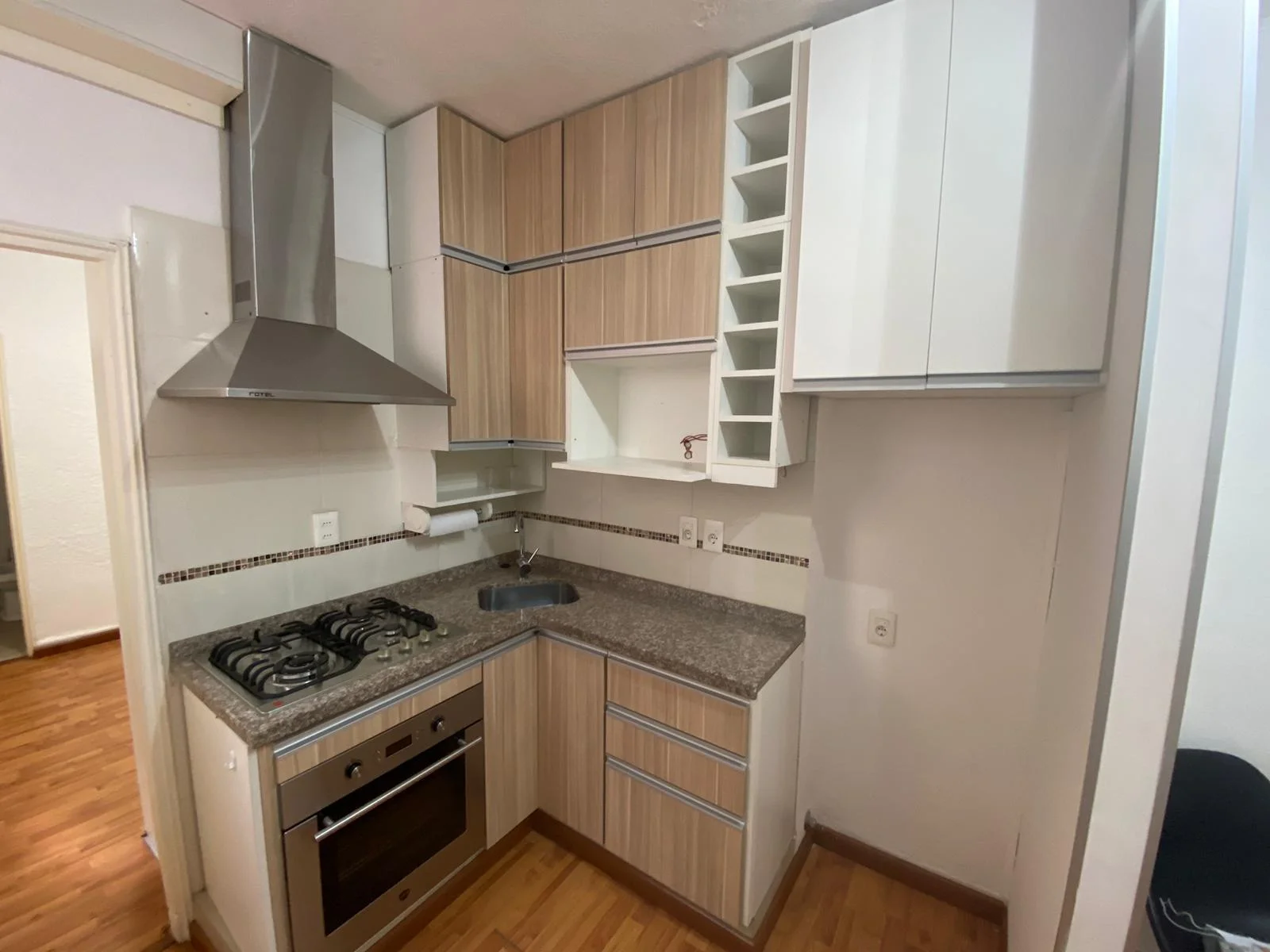 Cocina integrada con muebles aéreos, bajo mesada, campana extractora, anafe y horno eléctrico.(sin heladera)