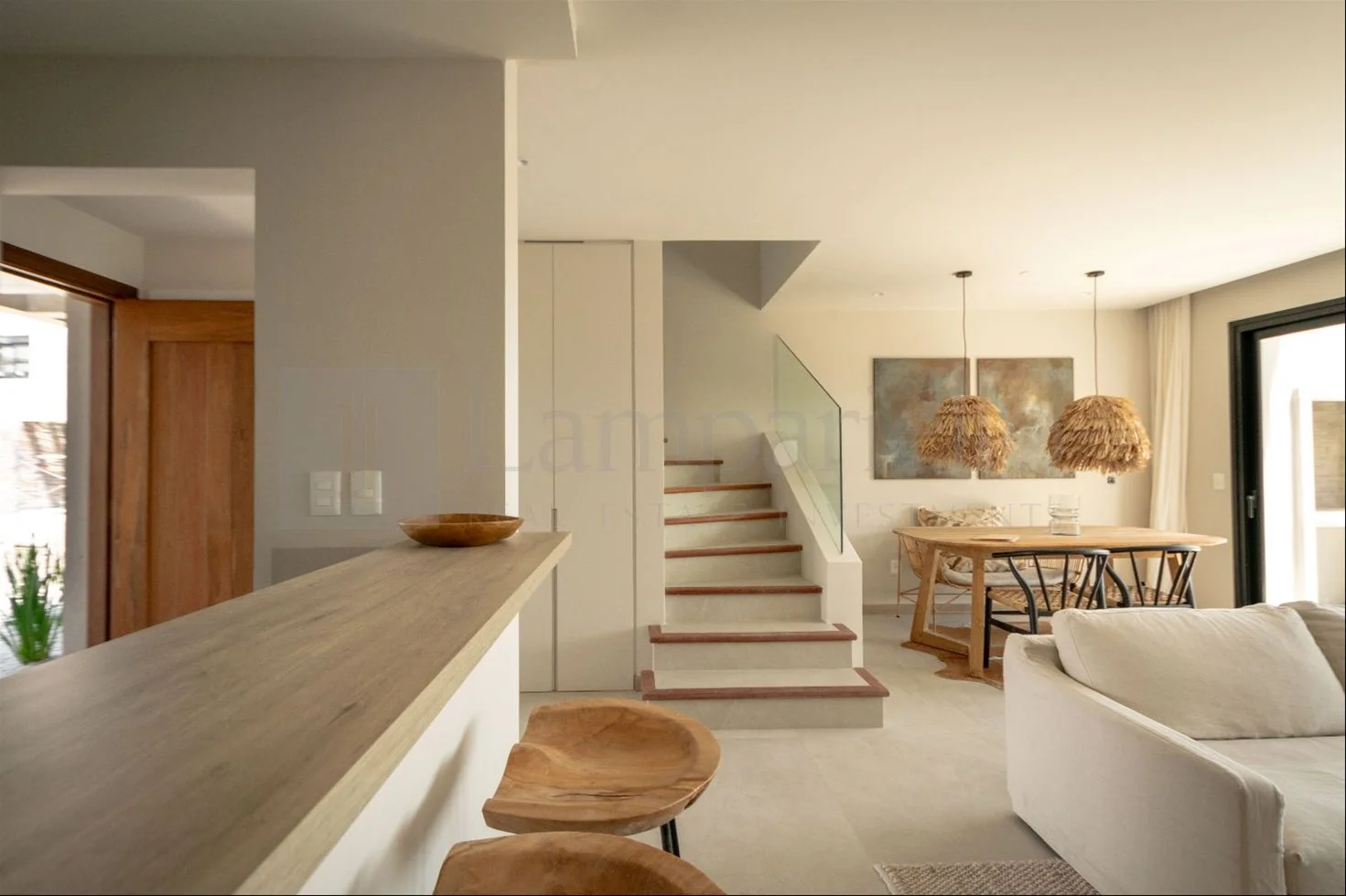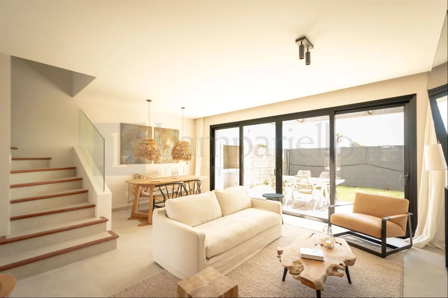 En planta baja hay un living comedor con cocina semi integrada, un toilette y un jardín privado con parrilla.