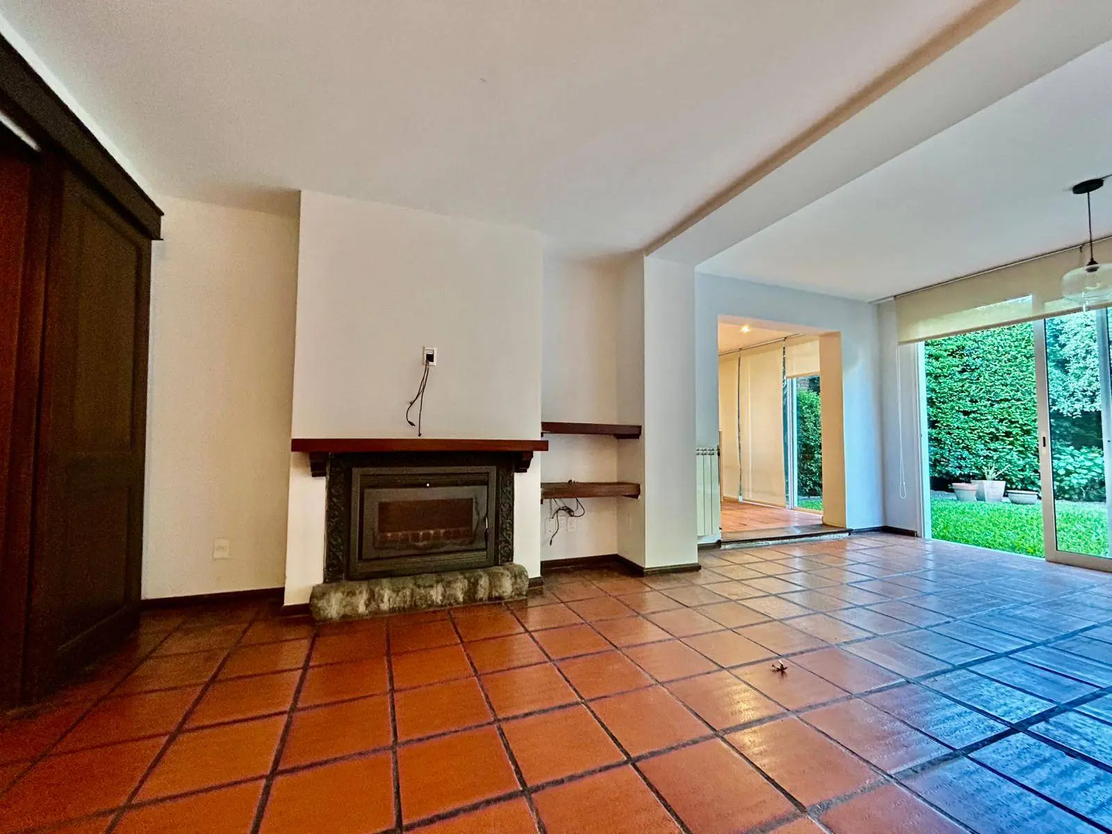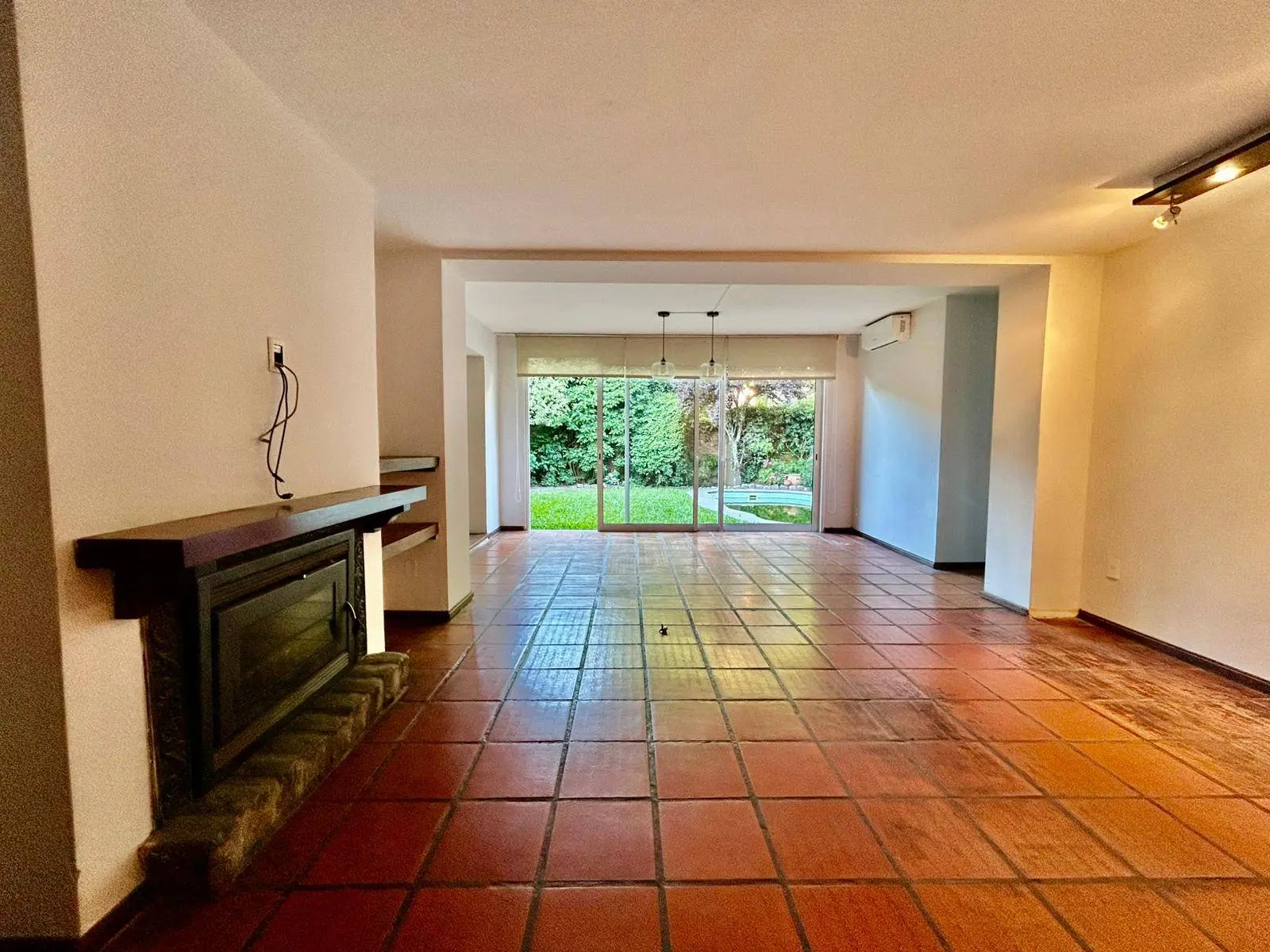 En planta baja al frente living con estufa a leña. Al contra frente estar con comedor diario y barbacoa con salida al jardin,