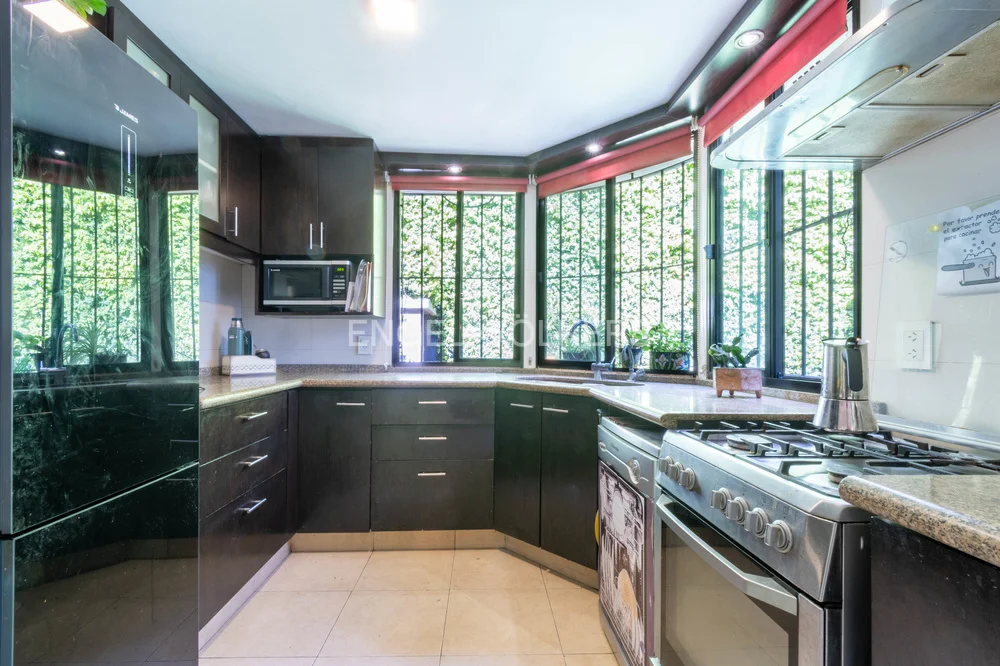 Al ingresar, nos recibe un imponente living-comedor y sala de estar con hogar a leña, realzados por un elegante piso de parqué de lapacho. Este espacio se conecta con una cocina muy luminosa con comedor diario y salida directa al jardín. En el exterior, la casa ofrece un sector verde con césped natural integrado a un amplio parrillero.